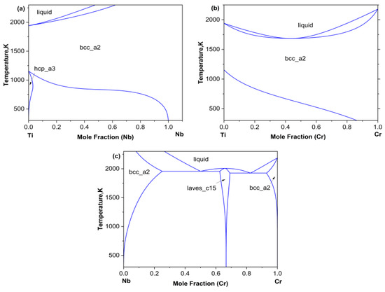 This article plots three binary phase diagrams as shown in Figure 1 based on the binary thermodynamic descriptions of Ti-Nb provided by Biao et al. [23], Ti-Cr, and Cr-Nb provided by Hai et al. [15].