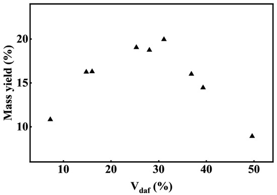 The correlation between mass yield of coal-based CDs and Vdaf.