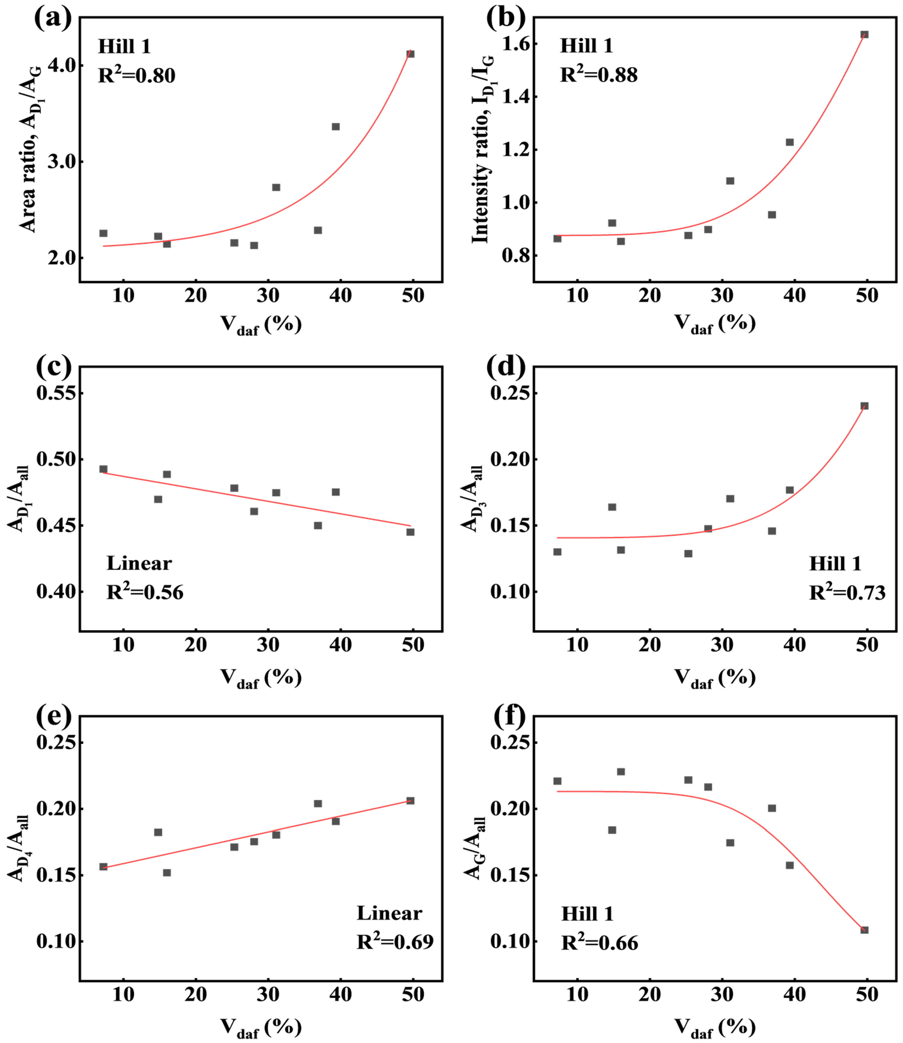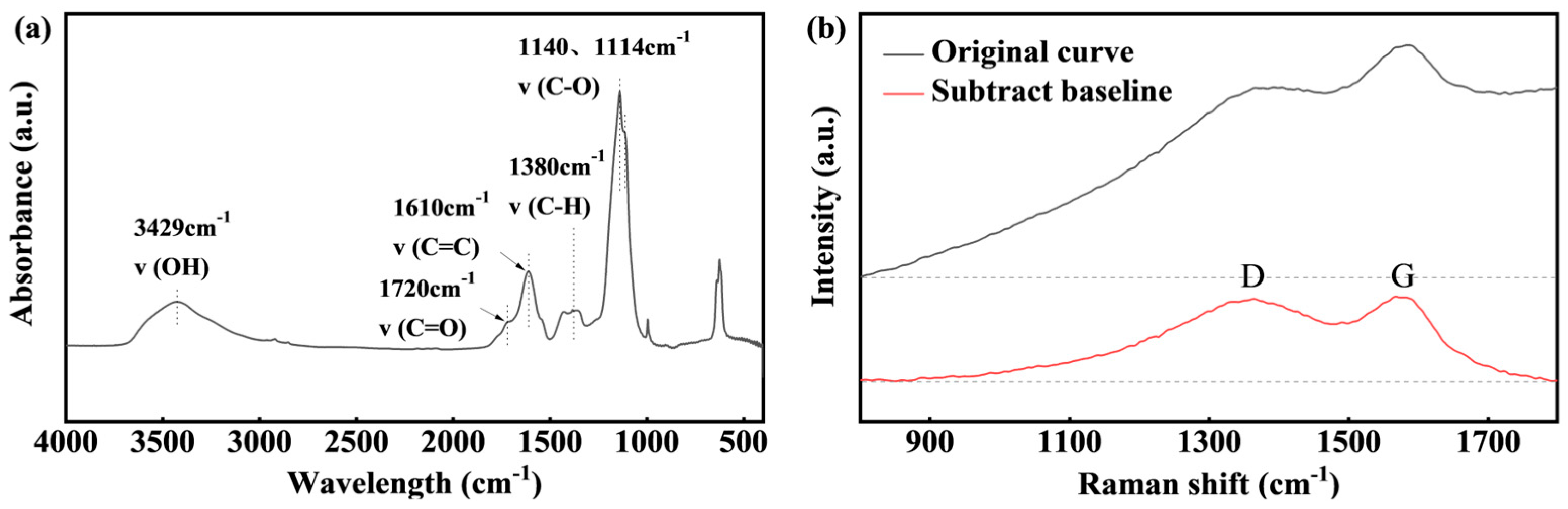 | D1 | 1350 | In-plane defects of graphite; large aromatic ring structure with no less than six rings and C–C bonds between aromatic rings |