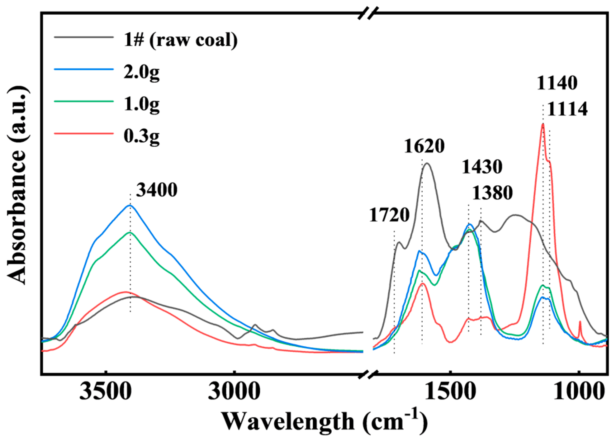 2.5. Spectrum Analysis of Raw Coals and CDs