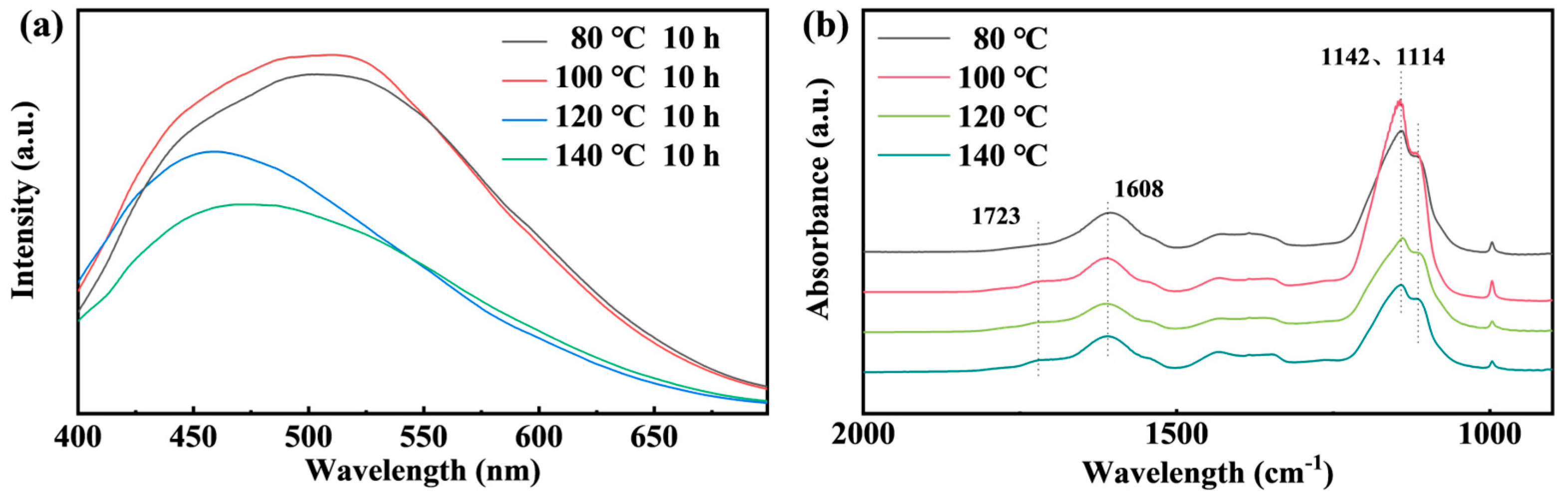 3.2. Effects of Synthesis Conditions on the Properties of Coal-Based CDs