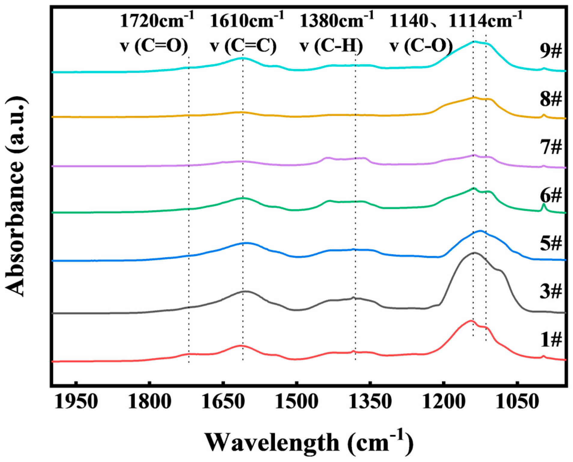 | Name | Peak Position (cm−1) | Structure Information |