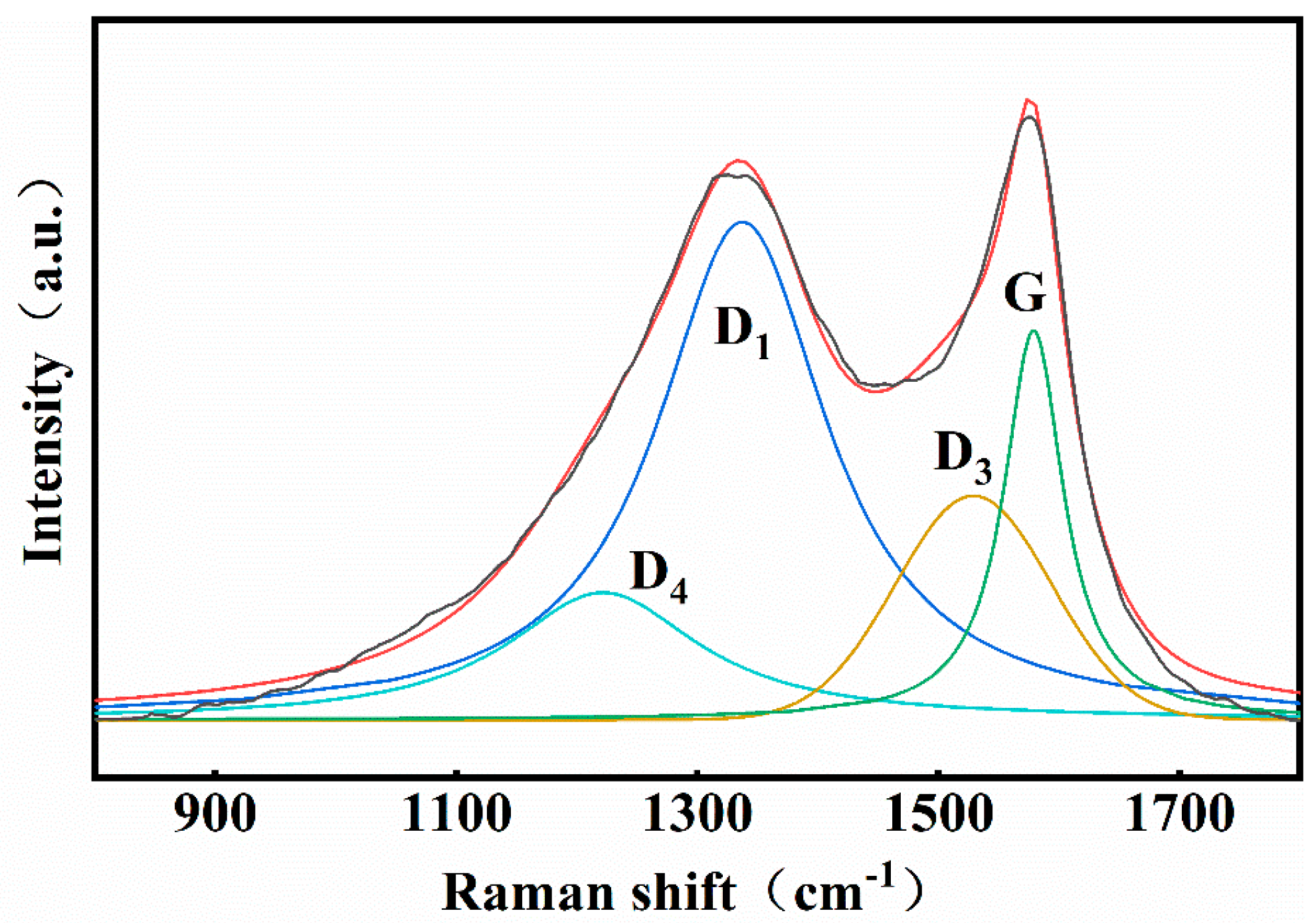 | D3 | 1500–1550 | Amorphous carbon structures such as the (methylene) structure, the small aromatic ring structure of 3–5 rings, etc. |