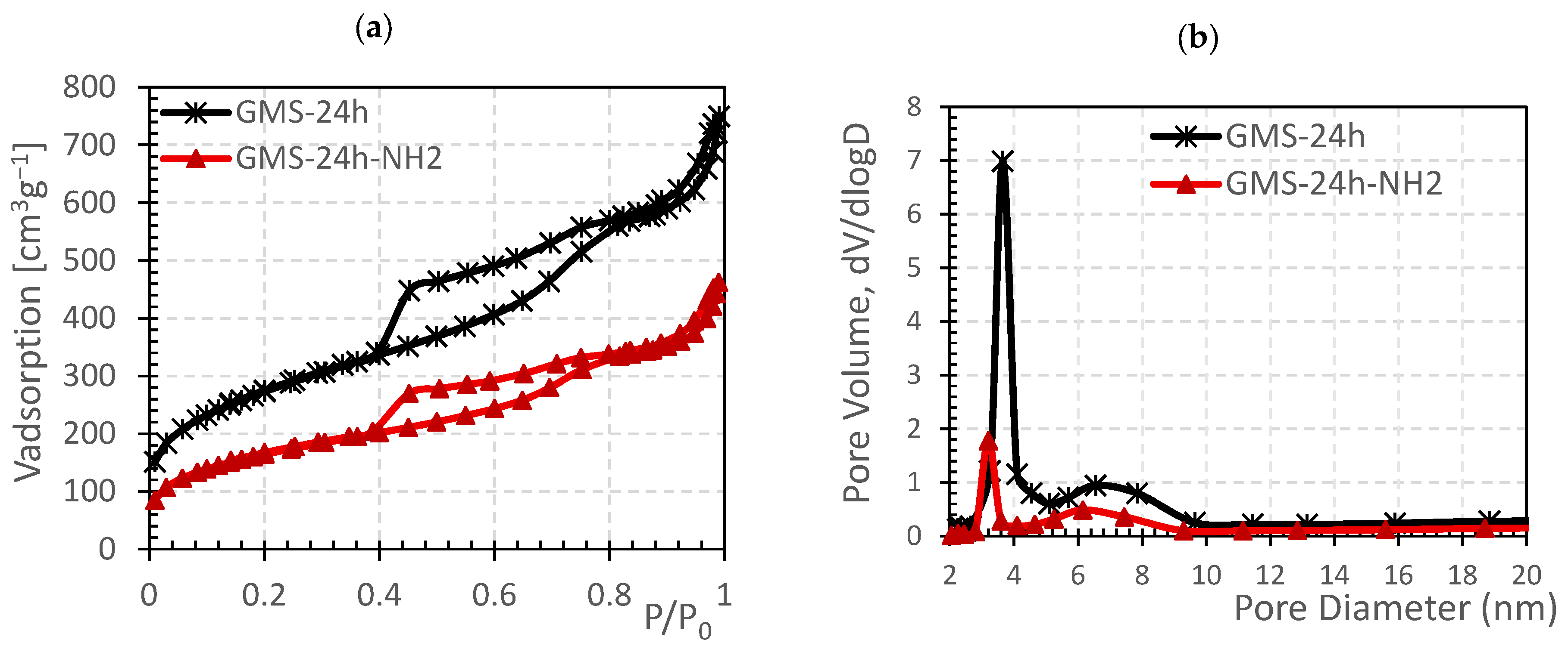 - Compared to other green mesoporous silica materials, such as SRH and SRH-Triamine, the two modified GMS samples demonstrated an increase of approximately 44% in adsorption capacity.