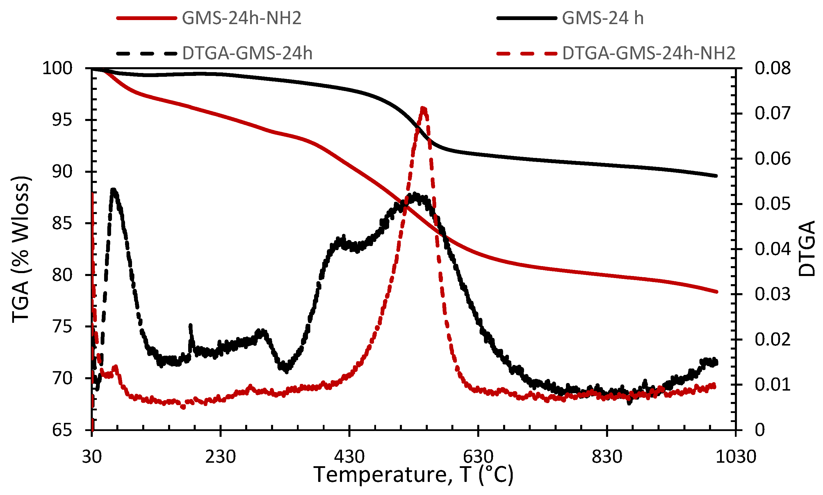 3.2. GMS Modification with Amine Groups