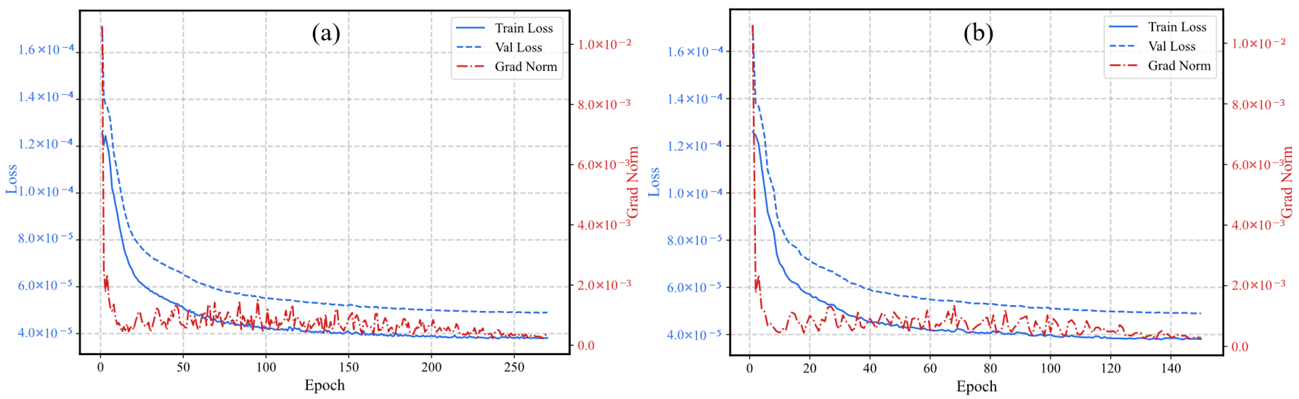 Figure 9. The curve of Loss and Grad during training: (a) pre-training, (b) transfer-training.