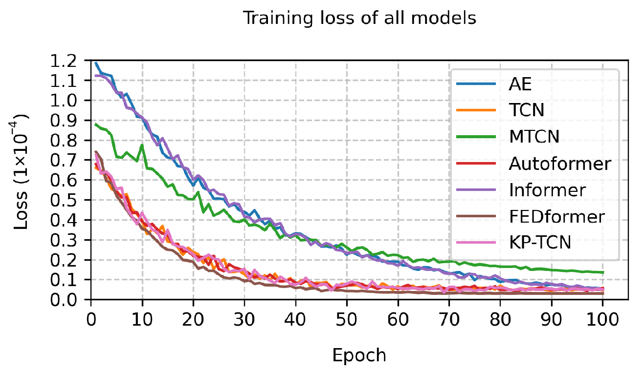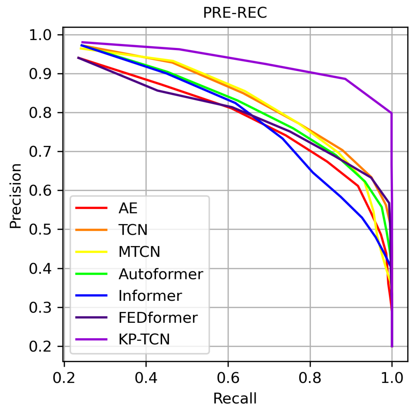 | Method | AE | TCN | MTCN | Autoformer | Informer | FEDformer | KP-TCN |