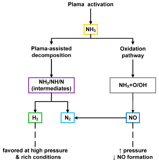 Plasma technology is rapidly evolving and has been employed across various fields, including healthcare, manufacturing, agriculture, and aerospace. In particular, plasma-assisted combustion has emerged over the past twenty years as a highly promising approach, demonstrating a strong ability to enhance combustion efficiency, reduce emissions, and improve fuel reforming processes [7,8,9,10]. The high-energy electrons and reactive species present in plasma promote the dissociation and ionization of reactants and drive electron excitation processes [11]. As a result, plasma produces abundant high-energy electrons, ions, and excited-state particles that facilitate chemical reactions, thereby enabling rapid ignition and accelerated combustion of the mixture [12]. When applied to the ignition and combustion of ammonia gas, plasma provides higher ignition energy compared to conventional spark plug systems. Furthermore, plasma discharge serves as an effective means of enhancing combustion performance while simultaneously reducing nitrogen oxide (NOX) emissions [13]. Therefore, plasma technology presents a dual advantage for ammonia fuel by simultaneously improving combustion efficiency and reducing NOX emissions [14,15].