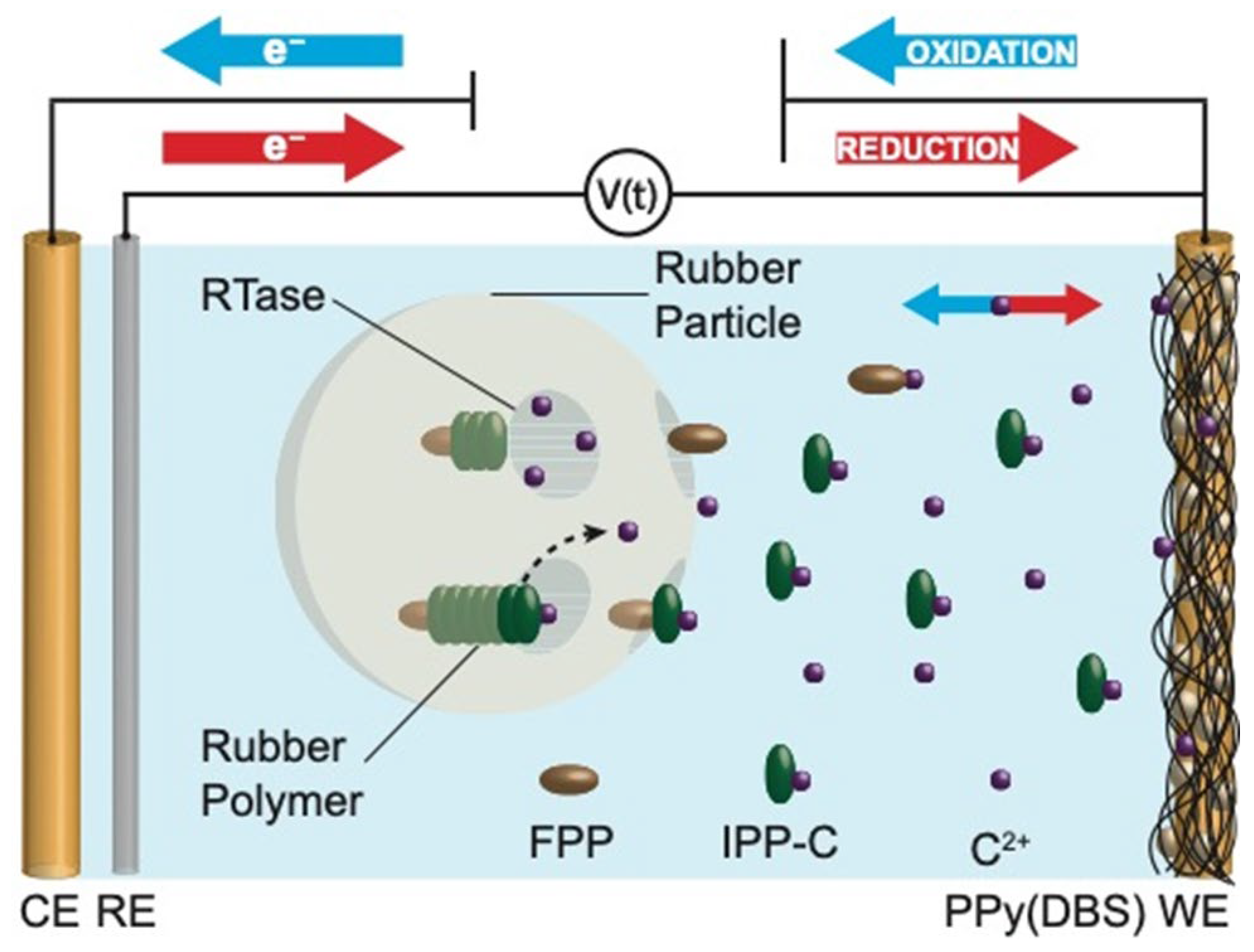 Evans, J.P.; Sundaresan, V.B.; Cornish, K. Electronic Activation and Inhibition of Natural Rubber Biosynthesis Catalyzed by a Complex Heterologous Membrane-Bound Complex. Processes 2026, 14, 374. https://doi.org/10.3390/pr14020374