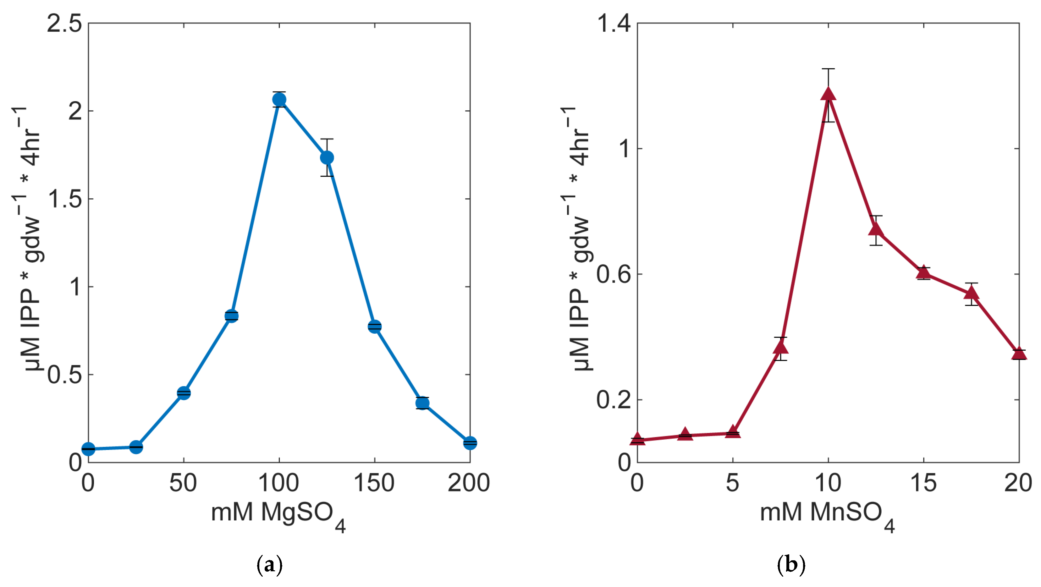 - da Costa, B.M.; Keasling, J.D.; McMahan, C.M.; Cornish, K. Magnesium ion regulation of in vitro rubber biosynthesis by Parthenium argentatum Gray. Phytochemistry 2006, 67, 1621–1628. [Google Scholar] [CrossRef] [PubMed]
