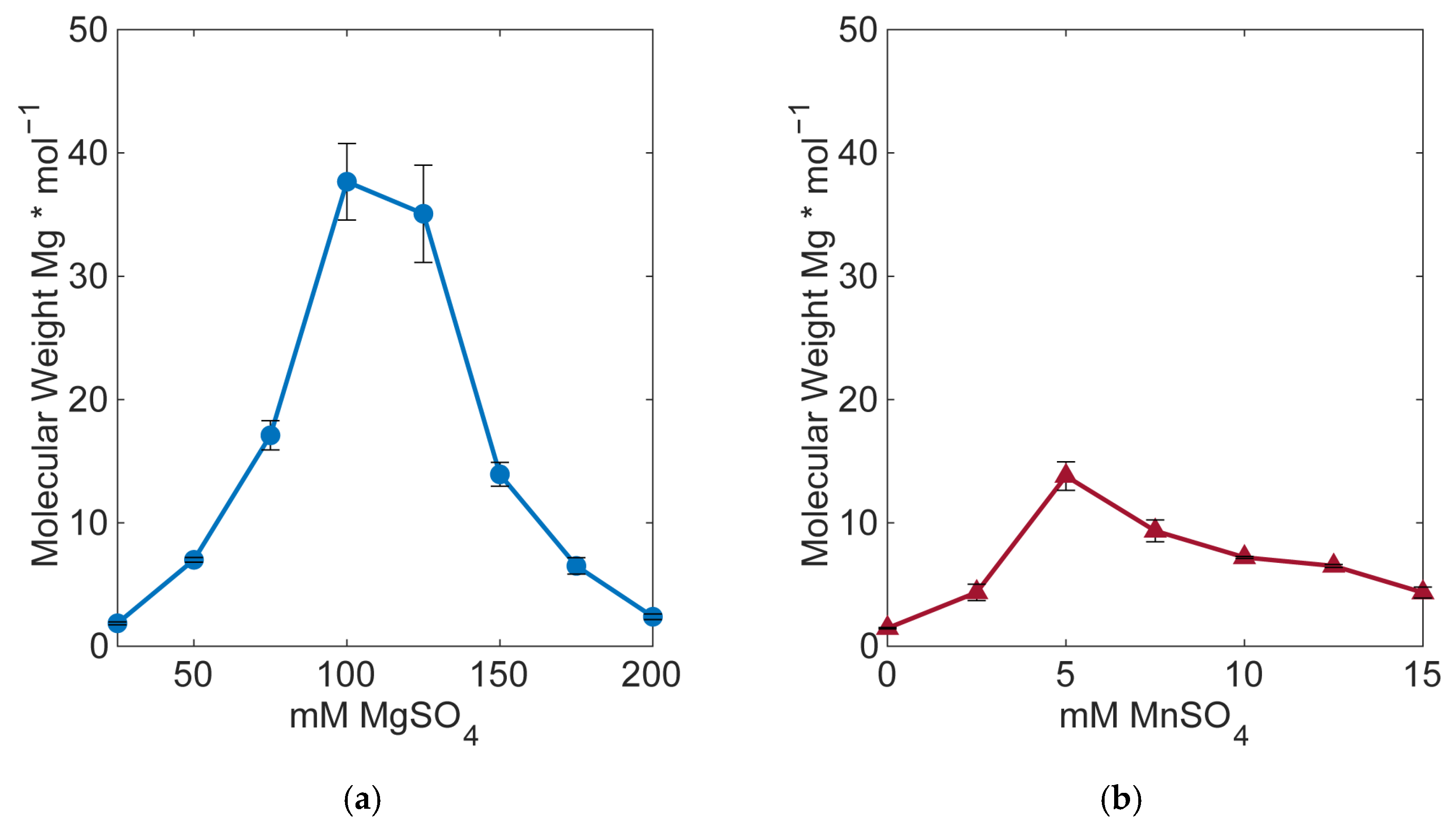 3.1.3. Rubber Molecular Weight Is Dependent upon Divalent Metal Cation Under Static Control