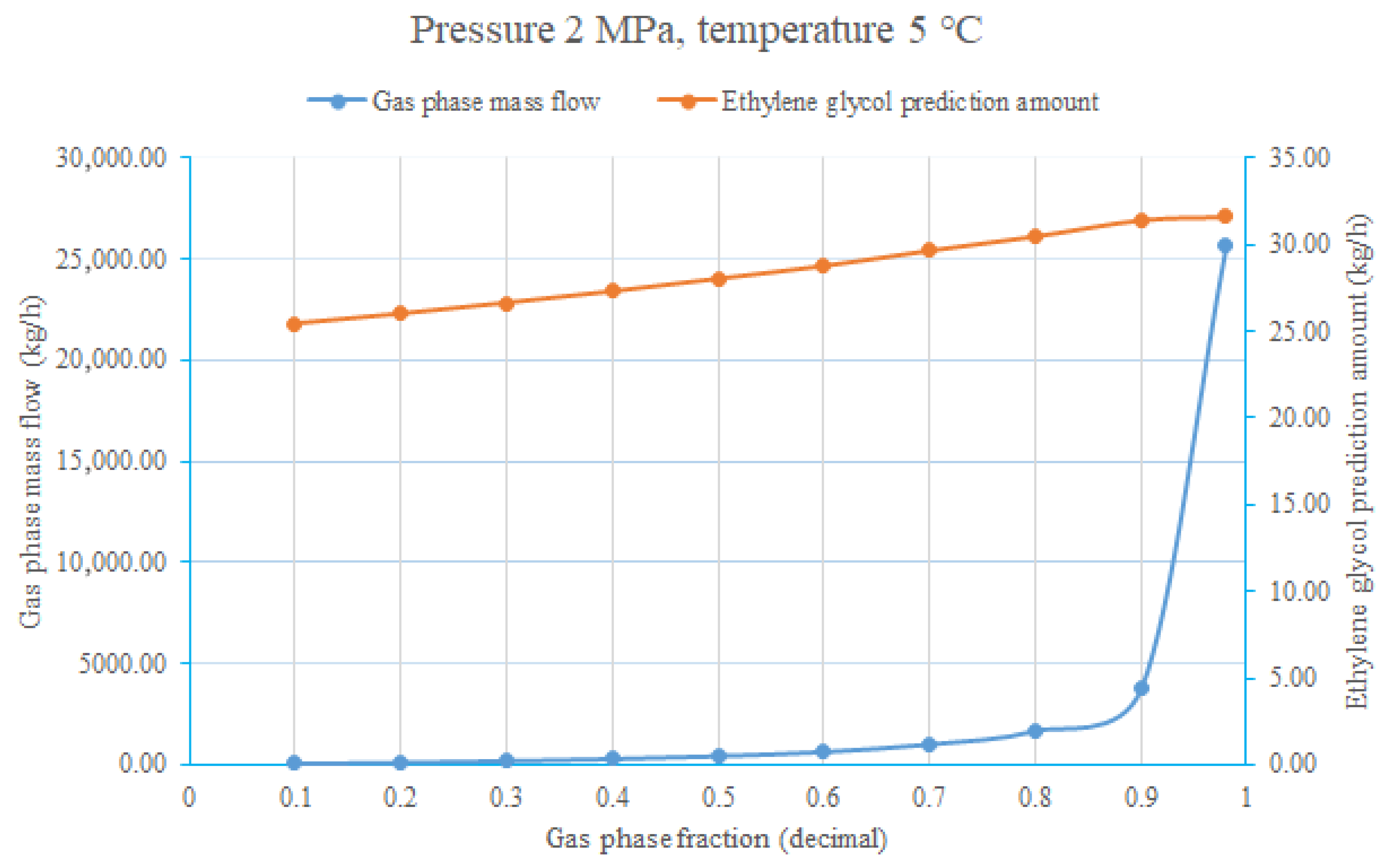 - Jiang, H.; Tang, T.; Liu, X.; Zhu, C. Optimization analysis of glycol injection amount at the first gas processing plant of Kela-2 gas field. Pet. Nat. Gas Chem. Ind. 2008, 37, 15–17+4. [Google Scholar] [CrossRef]