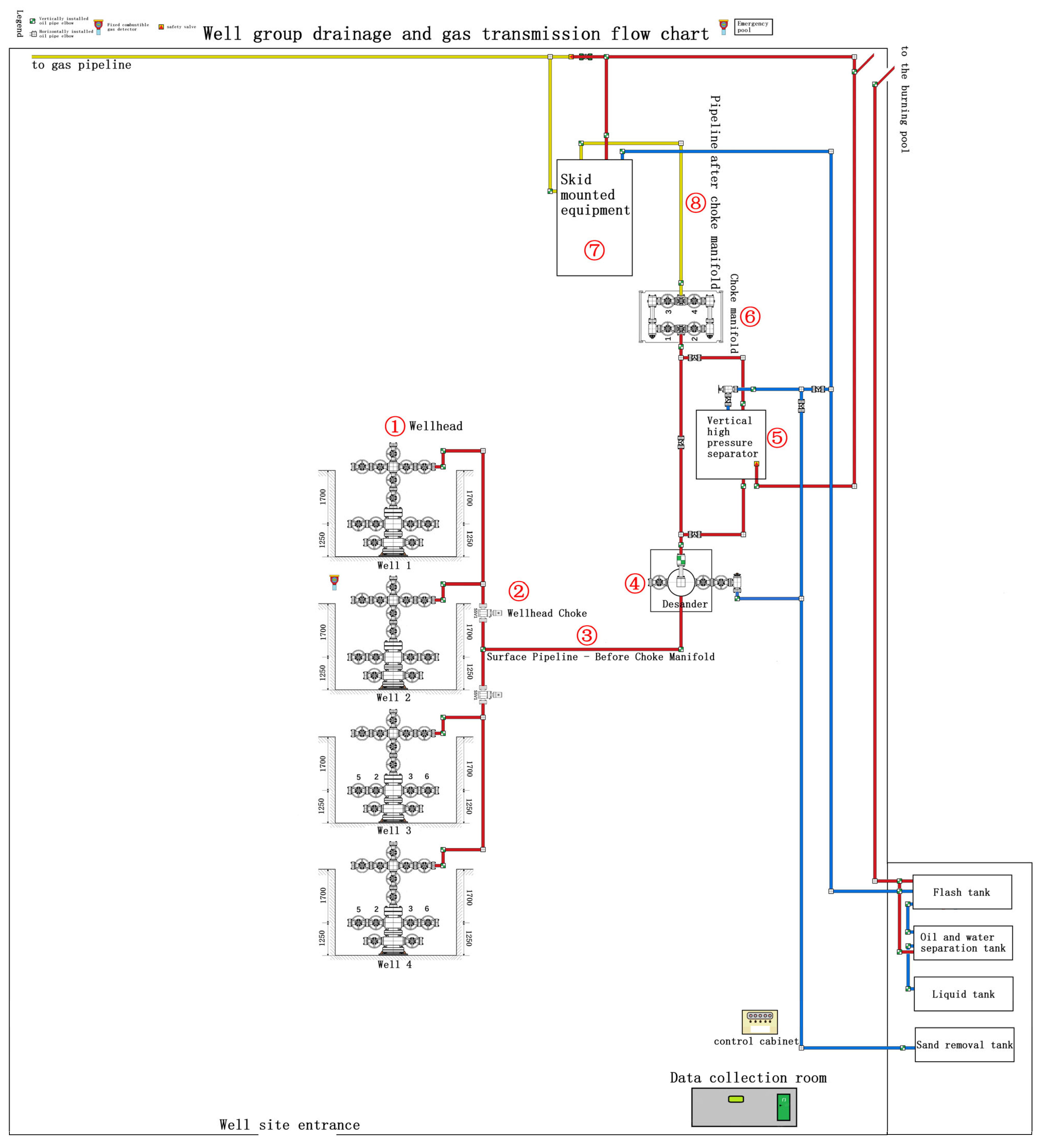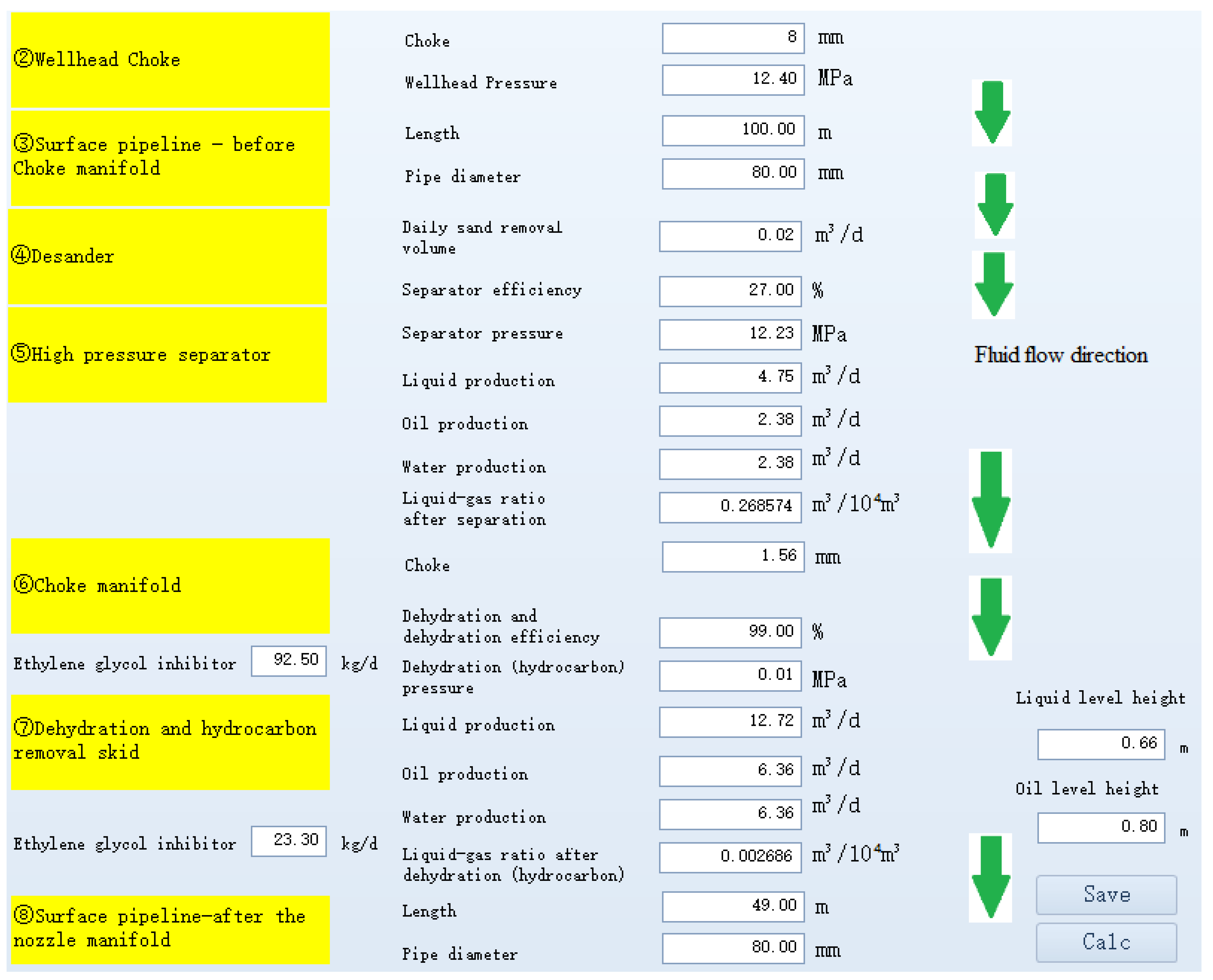 - Verified by field data from Well A, the model’s pressure and temperature prediction errors before and after throttling are both less than 6%, and the prediction error of the ethylene glycol injection amount required to suppress hydrates is less than 5%, indicating that the established model is highly reliable.
