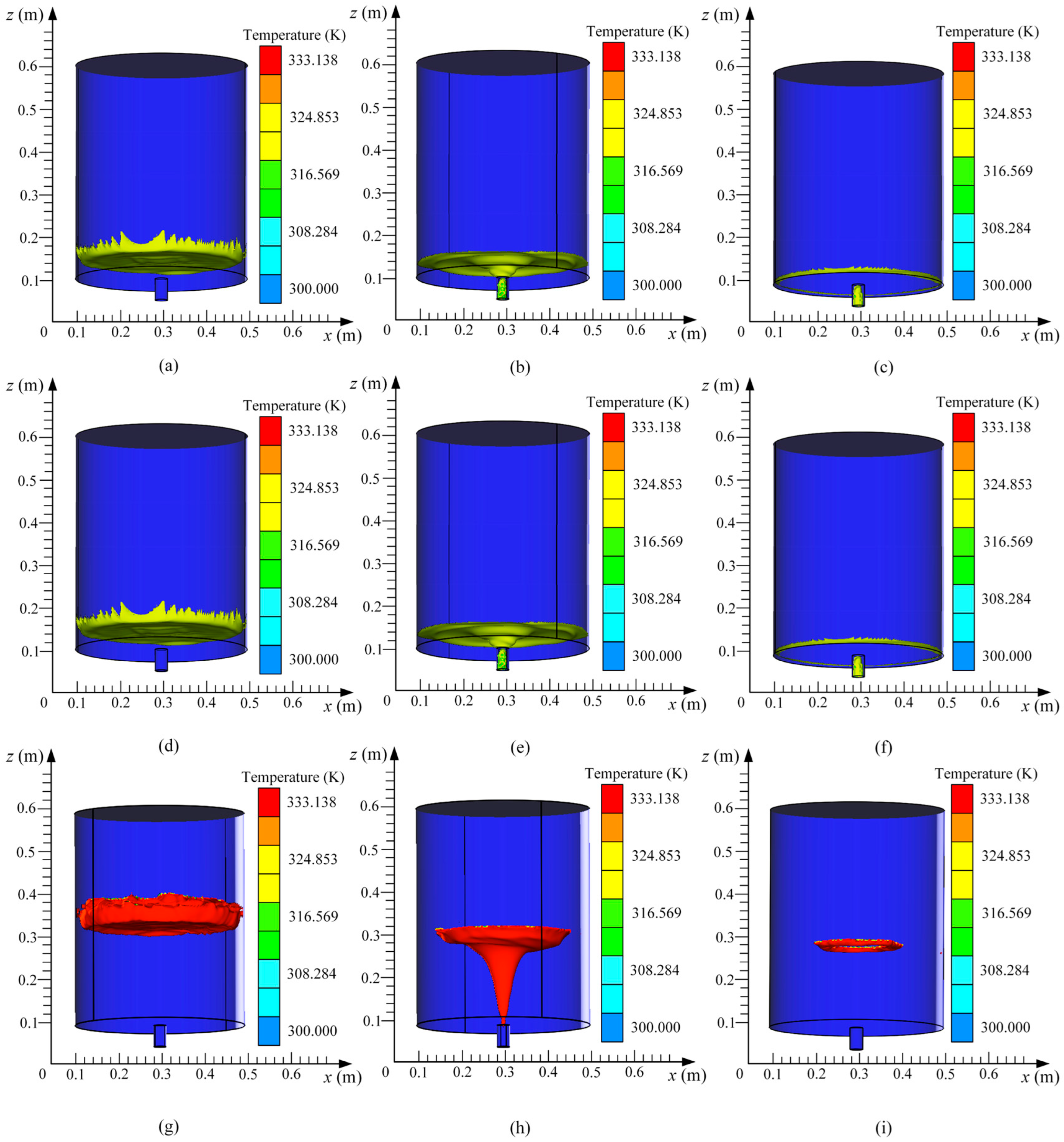 - The bidirectional coupling mechanism between the temperature field and vortex evolution has been systematically elucidated. This study reveals that temperature regulates the physical pathway of vortex evolution by altering the thermophysical properties of the fluid. Under low-temperature conditions, the higher fluid viscosity induces stronger viscous dissipation, which suppresses the rotational motion of fluid microclusters and consequently delays the formation and development of the vortex. Conversely, as the temperature increases, the viscosity decreases, enabling the fluid to organize more effective rotational motion under the constraint of angular momentum conservation, thereby accelerating the vortex evolution process and prolonging the drainage duration.