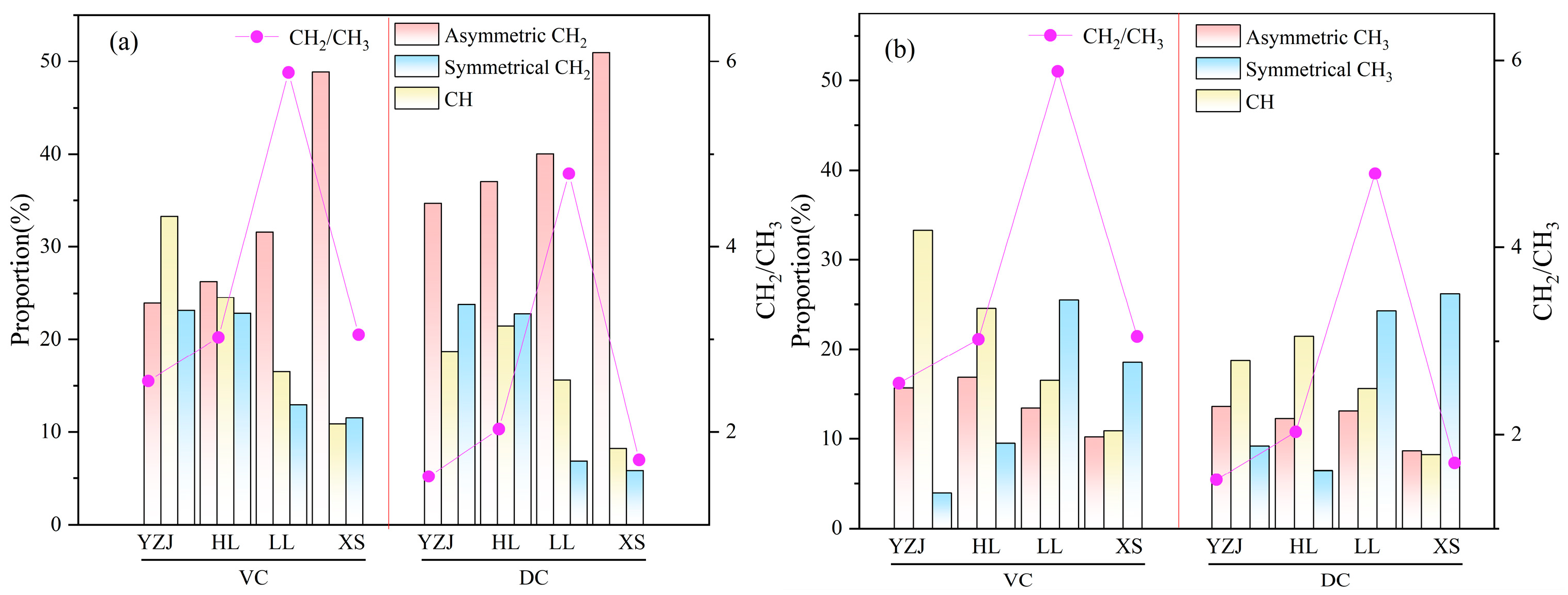 3.1.2. Aliphatic Structural Changes