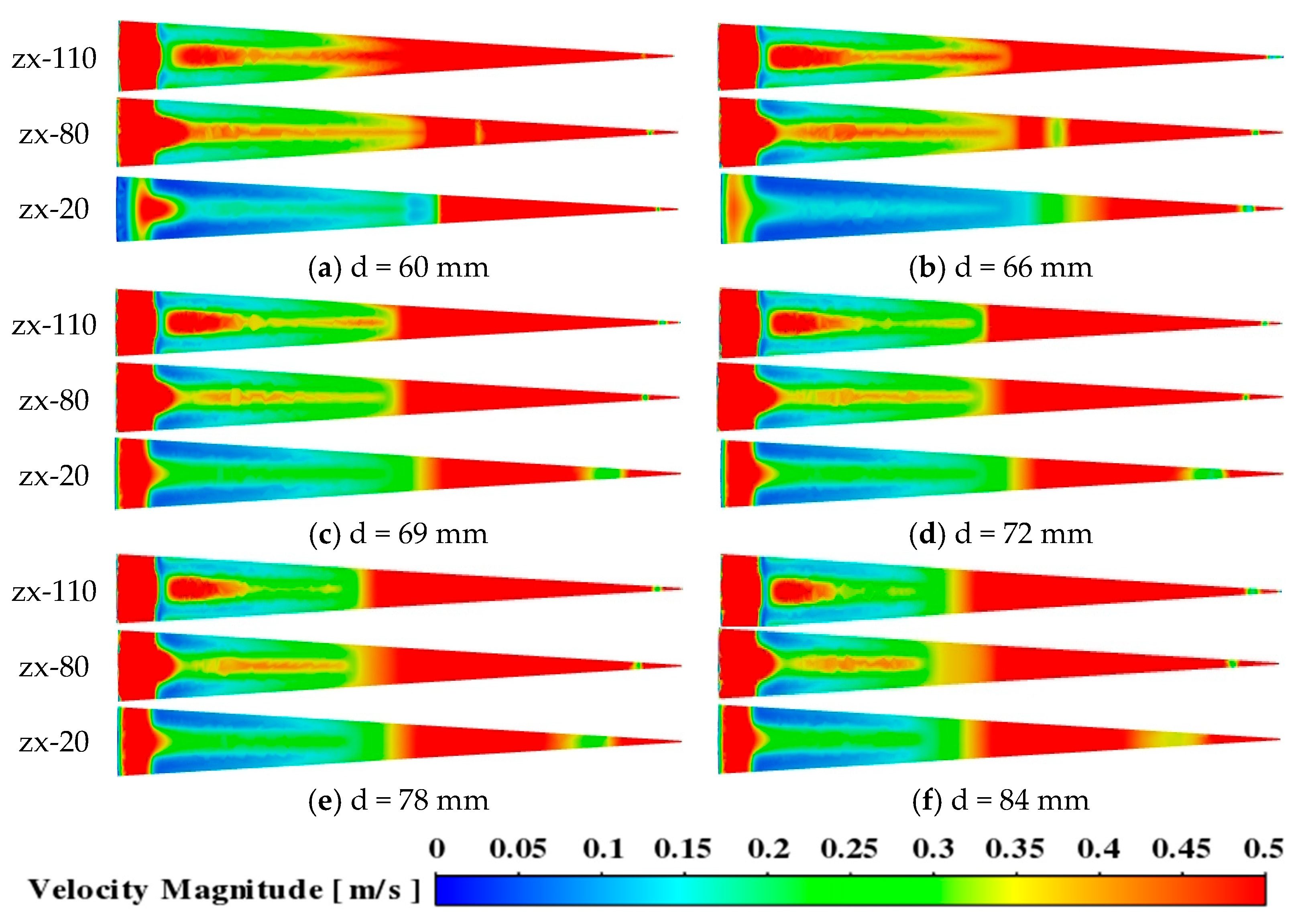 3.1.1. Influence of Inner Diameter on Flow Uniformity