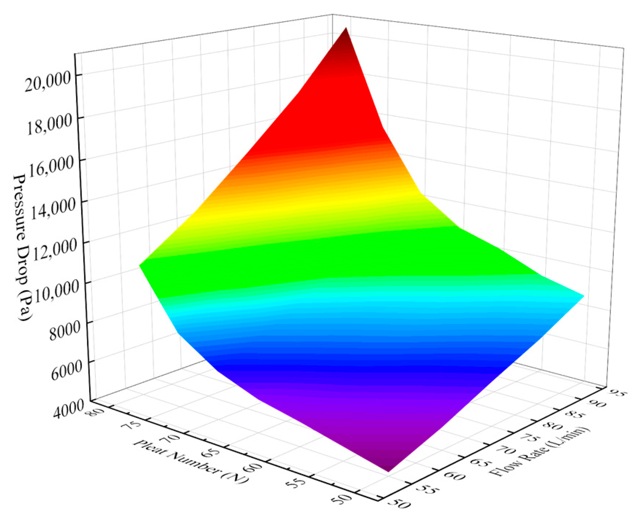 3.2.2. Influence of Pleat Number on Pressure Drop
