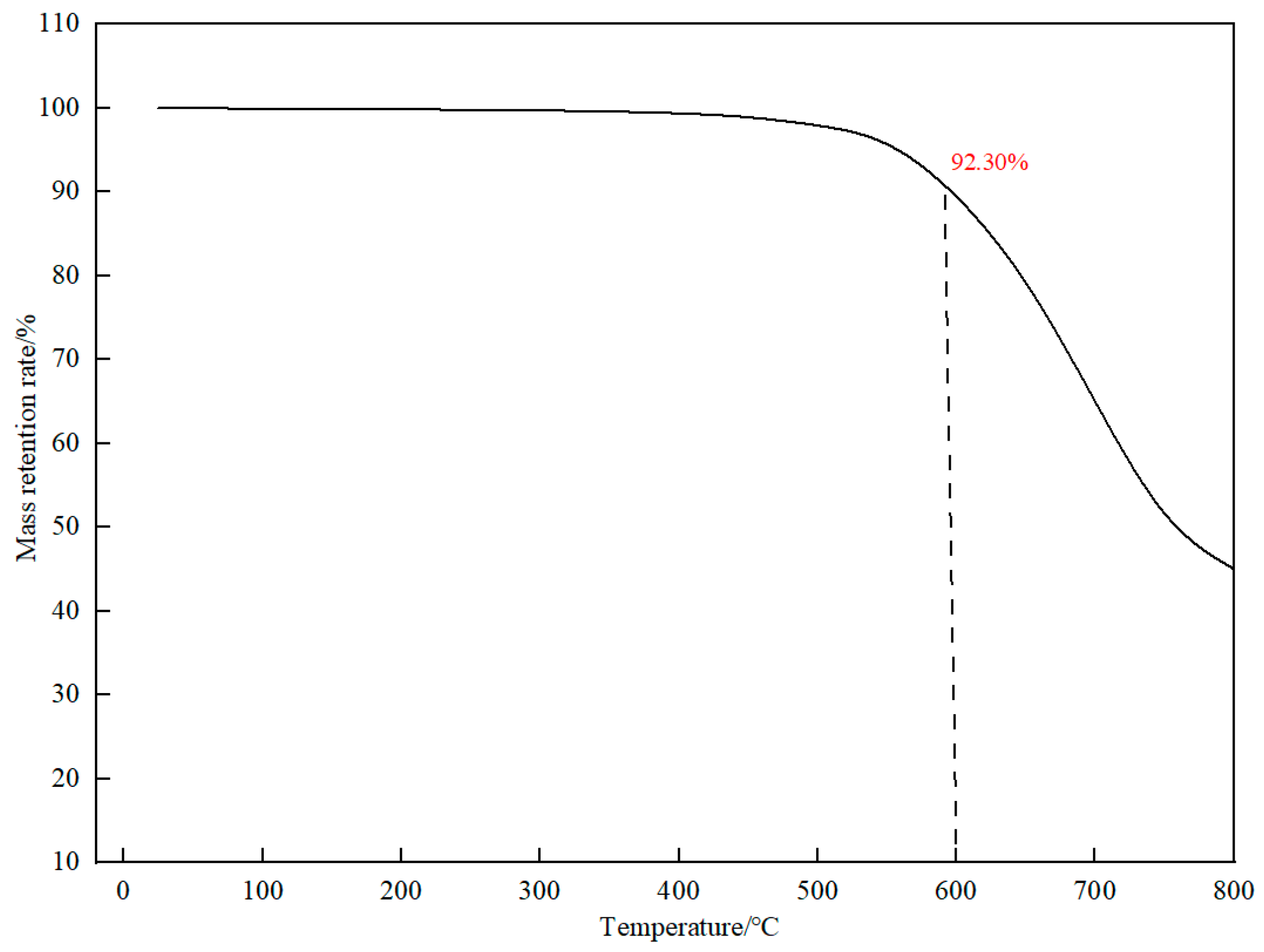 Figure 7, the thermogravimetric analysis data of polyimide particles (TLM-HTP) show that at 240 °C, the mass retention rate is as high as 99.8%, with a cumulative mass loss of only 0.2%. Its initial thermal decomposition temperature exceeds 550 °C, and the mass retention rate remains as high as 92.3% at 600 °C, far exceeding the temperature requirements of ultra-deep well drilling environments.