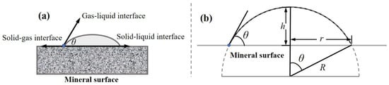 (a) Schematic diagram of a contact angle. (b) Various parameters of a simulated contact angle.