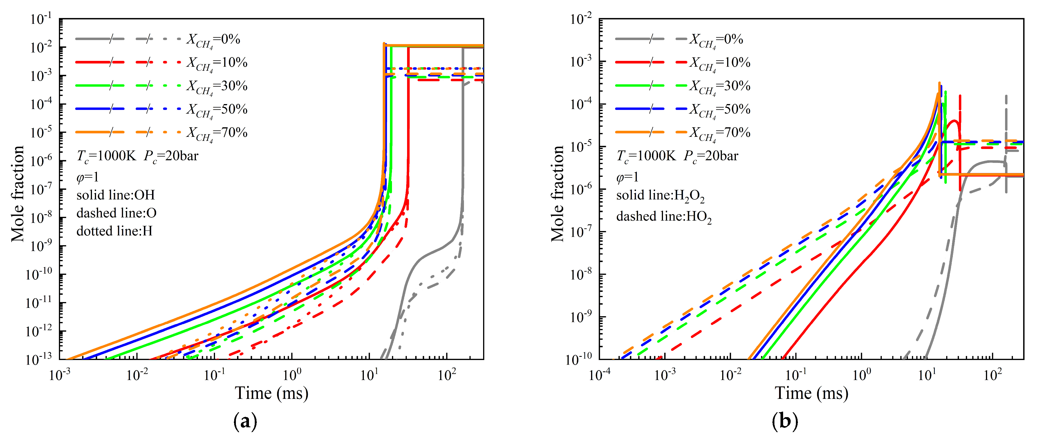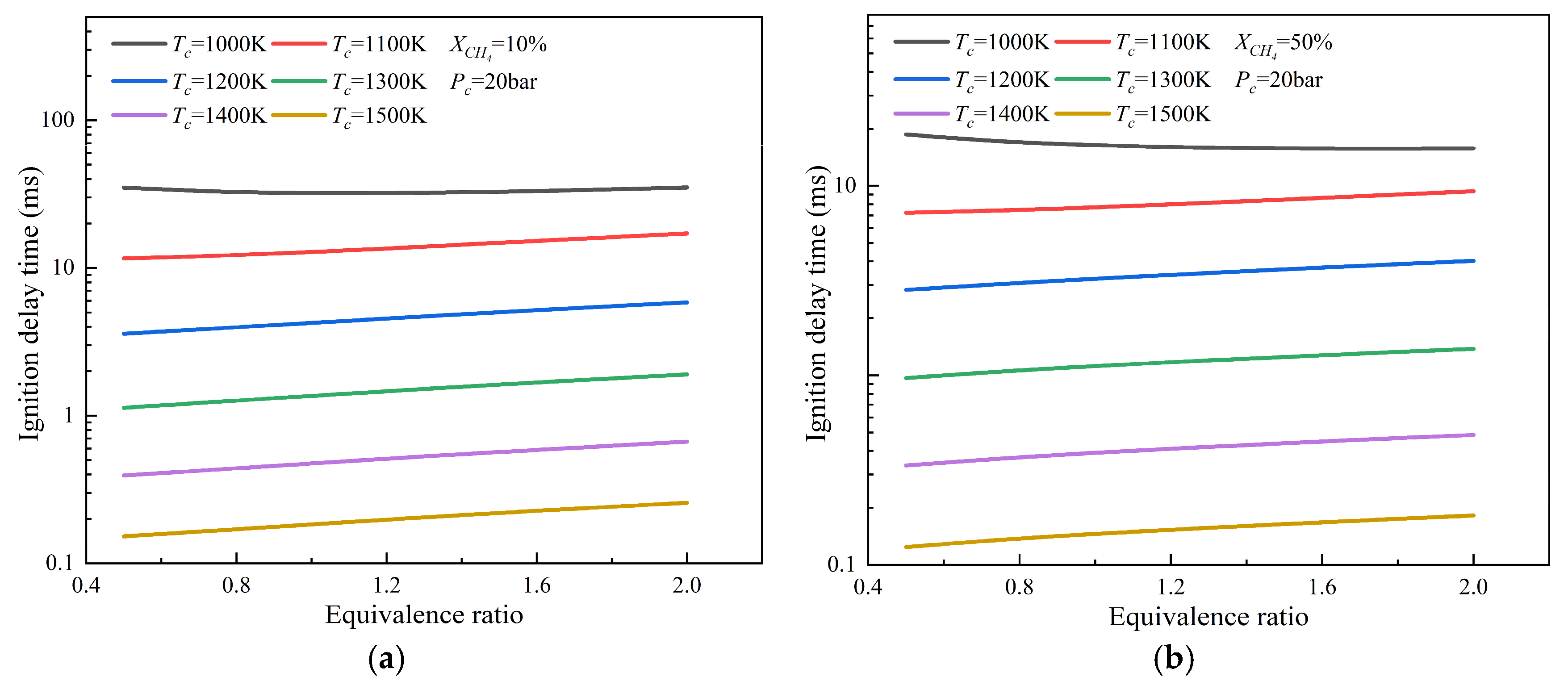 - Xiao, H.; Lai, S.; Valera-Medina, A.; Li, J.; Liu, J.; Fu, H. Experimental and modeling study on ignition delay of ammonia/methane fuels. Int. J. Energy Res. 2020, 44, 6939–6949. [Google Scholar] [CrossRef]