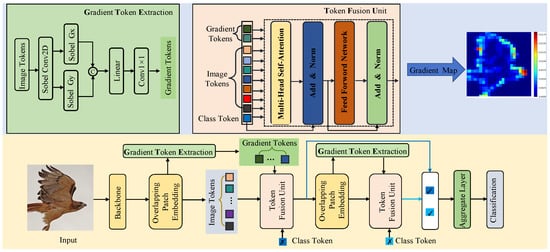The extracted gradient tokens are subsequently injected into the Transformer via a Token Fusion Unit (TFU), where they interact with image tokens and a learnable class token through multi-head self-attention. A two-stage fusion strategy is adopted to progressively refine token representations, and the class tokens from different stages are finally aggregated to produce the fine-grained classification output.