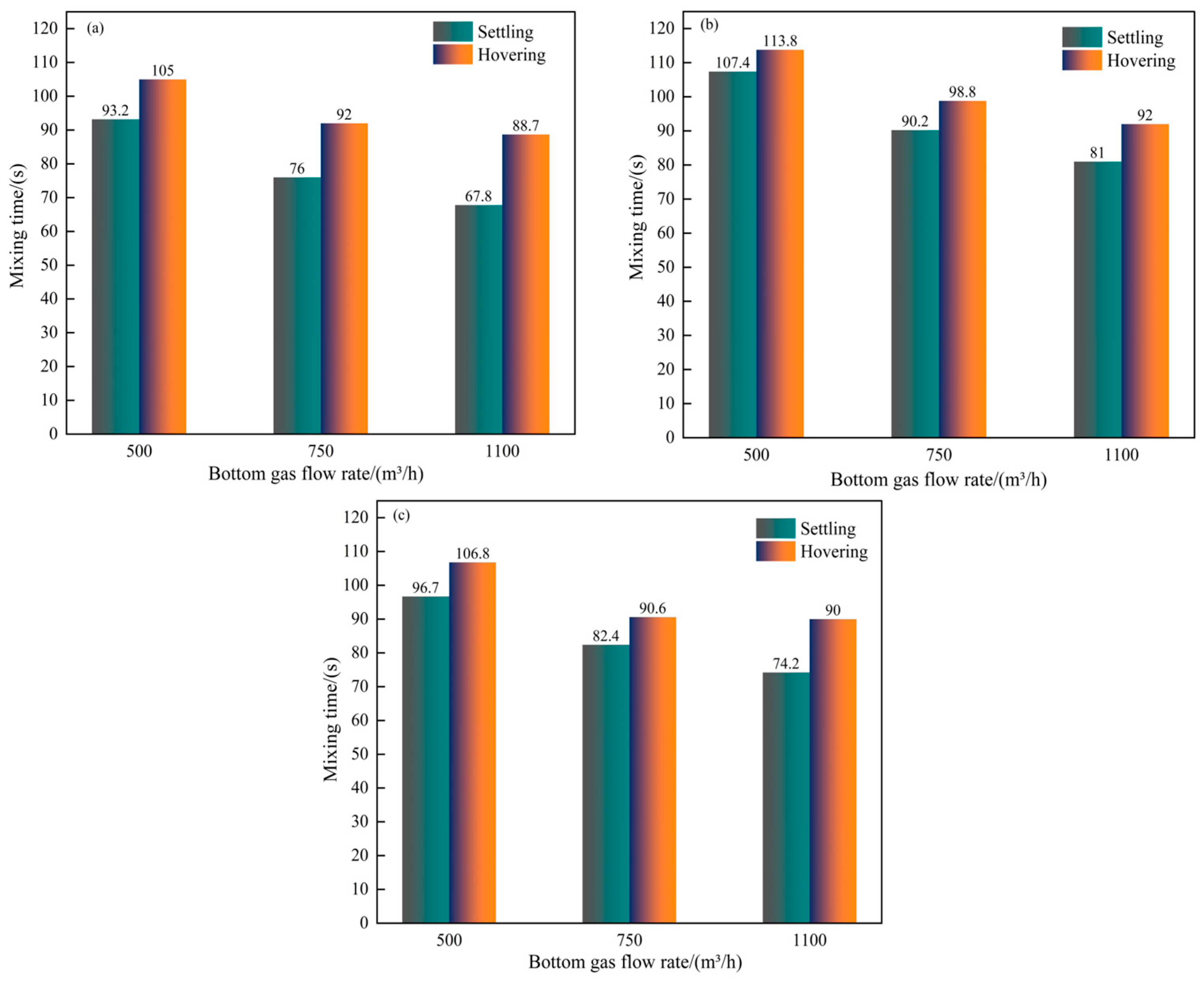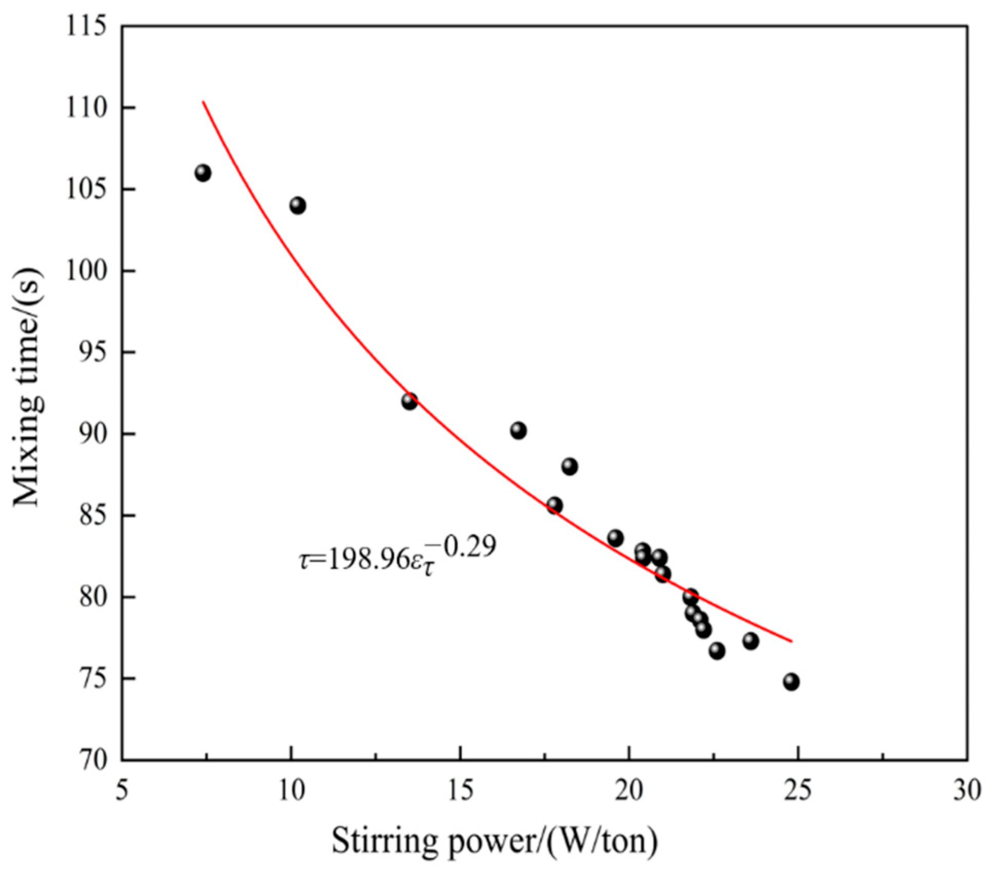 | Gas Flow Rate Change Stage | Percentage Reduction in Mixing Time Per 100 m3/h/% |