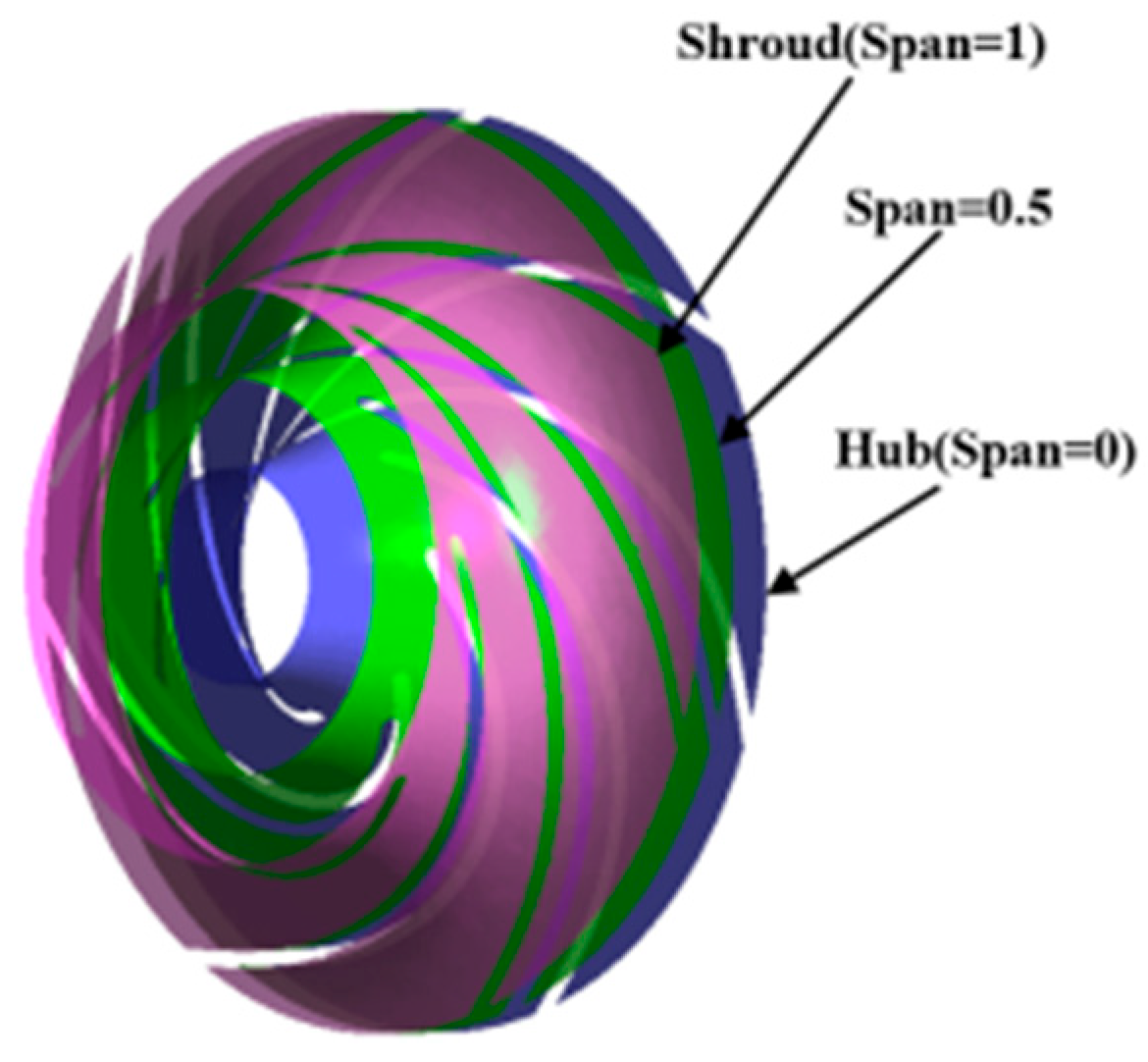 Figure 2. The mesh quality was evaluated as follows: the first-stage impeller scored 0.38, the remaining impellers 0.34, the spatial guide vanes 0.32, and the other stationary components averaged 0.30.