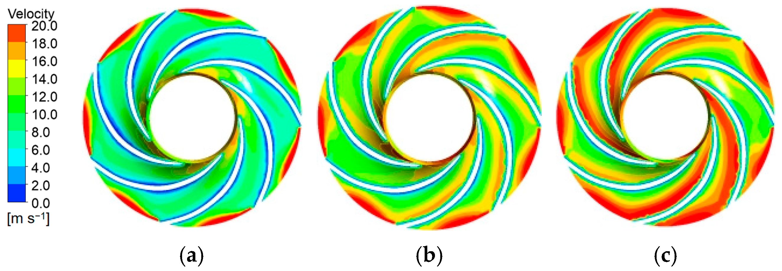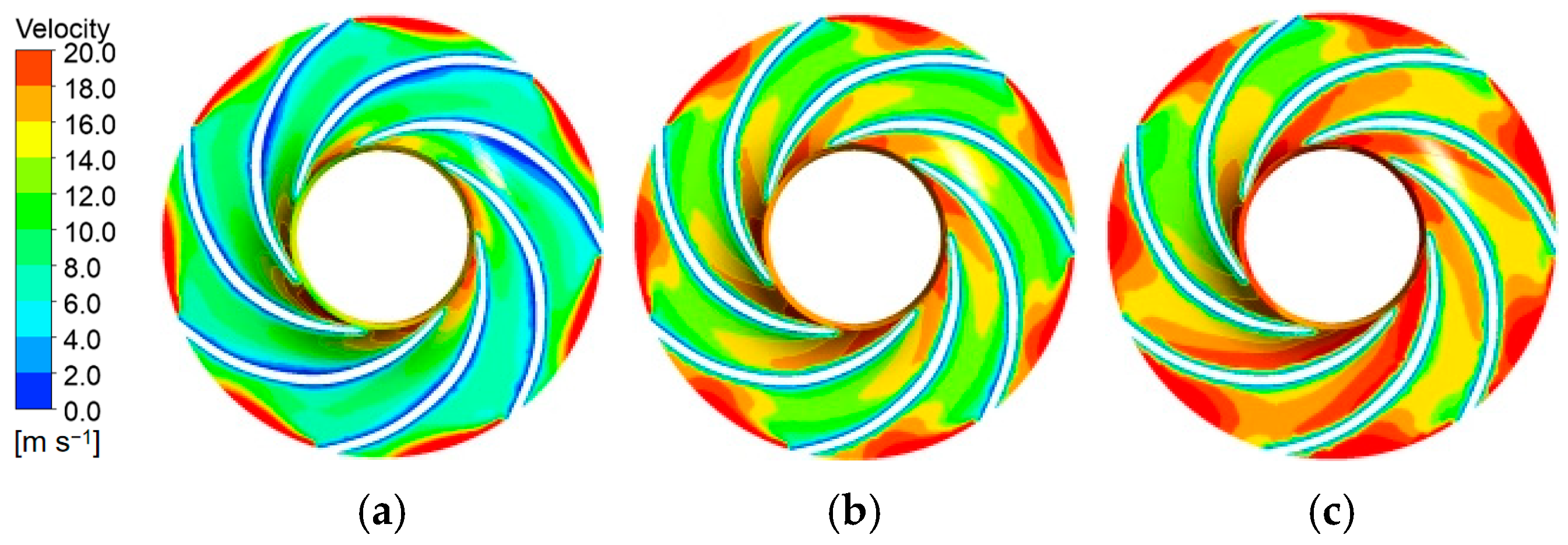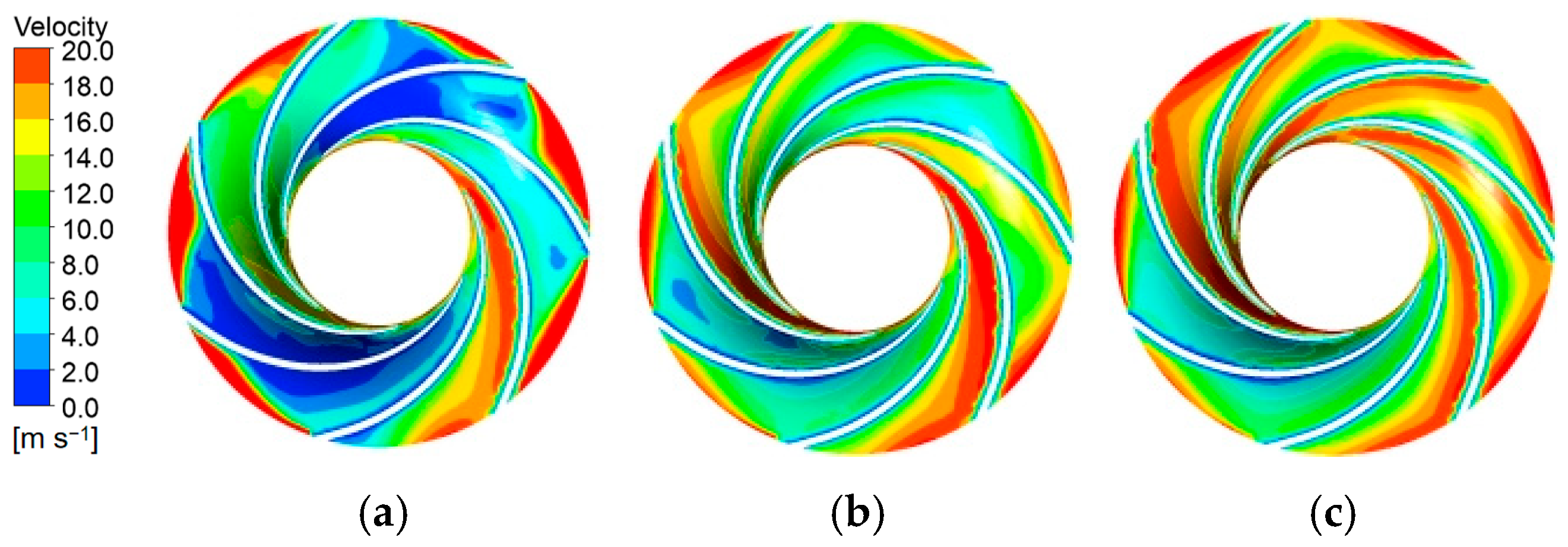 max = 0.93 under operating conditions, satisfying the accuracy criterion for transient flow resolution. The total simulation time covered 25 impeller revolutions (1.0135135 s). A residual convergence criterion of 1 × 10