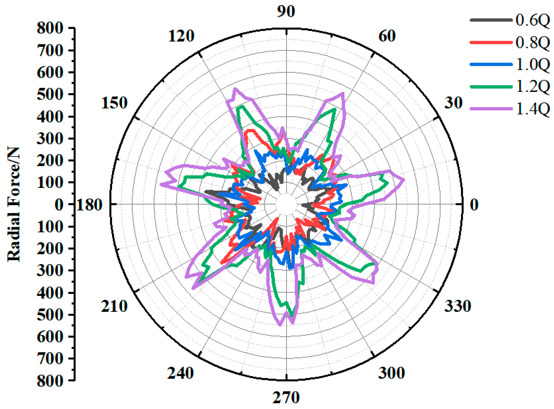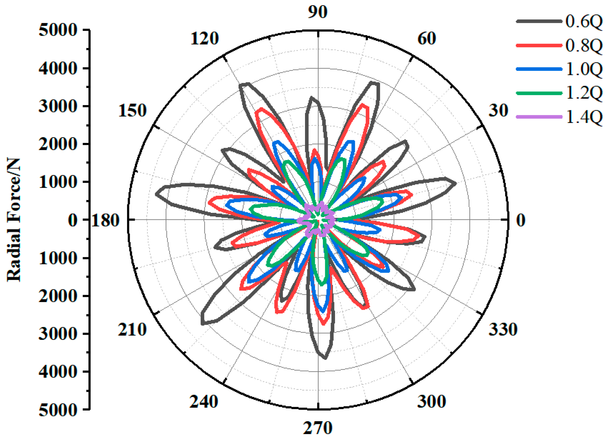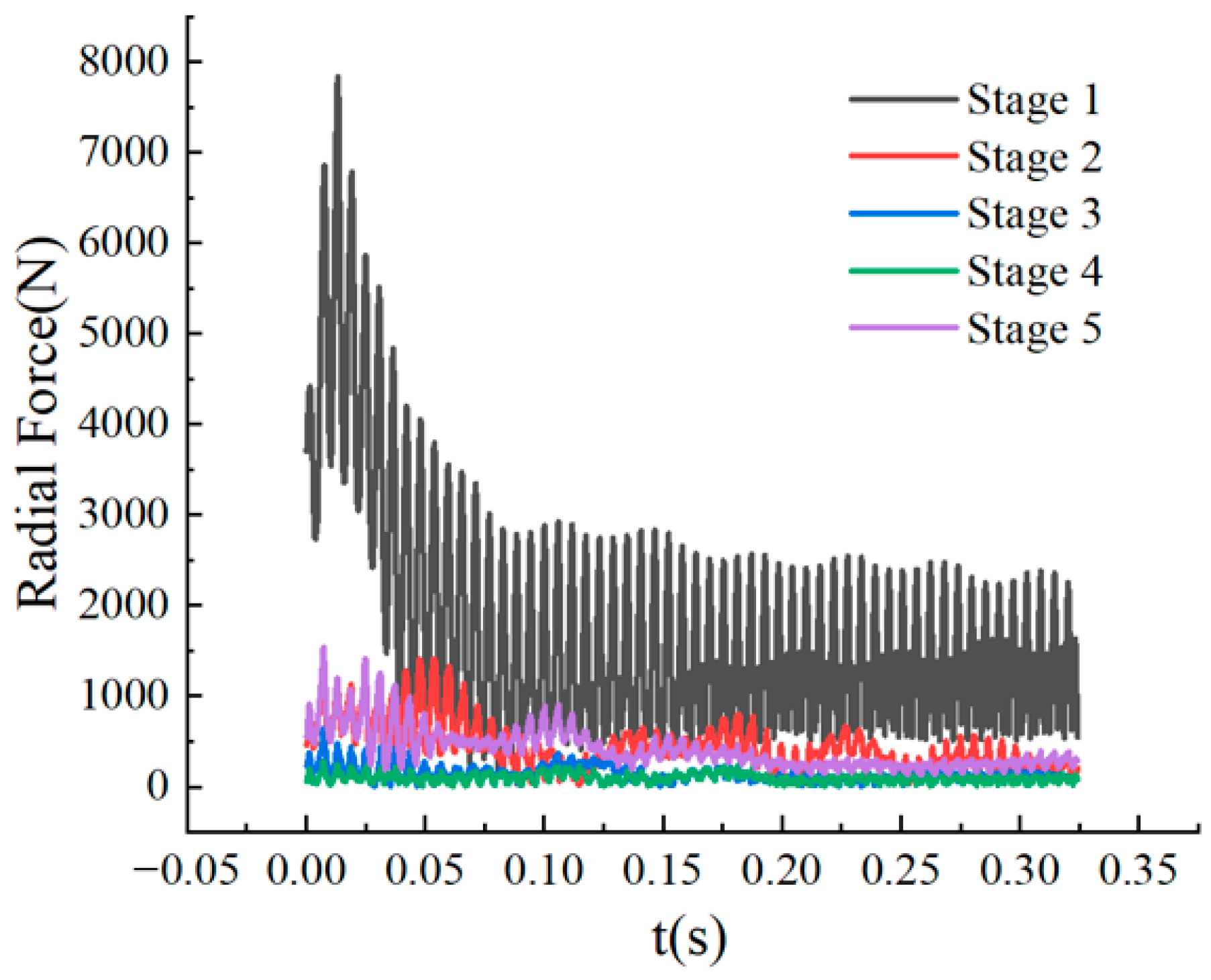 −4 was enforced per time step, while the radial forces on each impeller stage were monitored. The important solver settings are summarized in