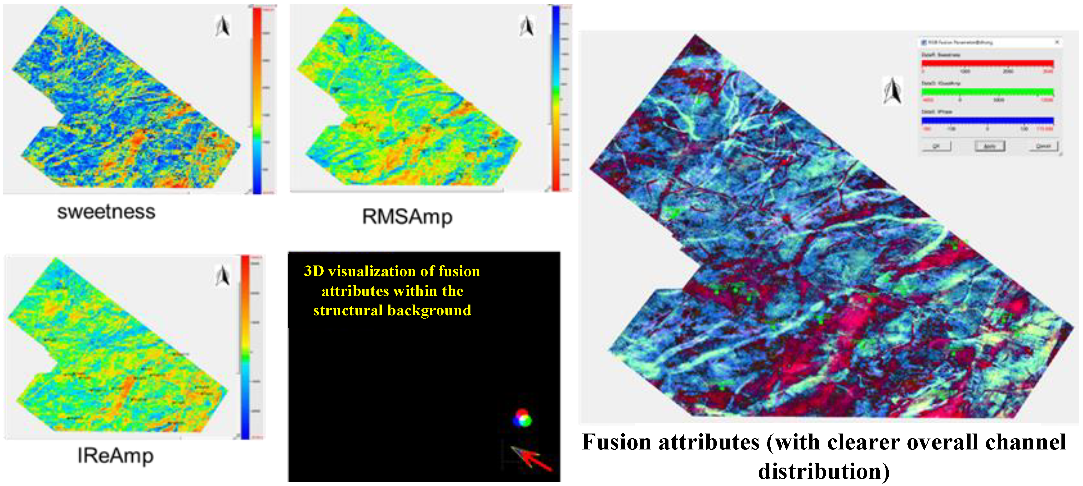Figure 8). In particular, RMS amplitude and sweetness provide robust indicators of the relative thickness and connectivity of fluvial channel sandstones in the study area. Sweetness is defined as