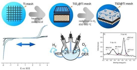APA StyleRanković, M., Rakočević, L., Jevremović, A., Nedić Vasiljević, B., Janošević Ležaić, A., Bajuk-Bogdanović, D., Milojević-Rakić, M., & Gavrilov, N. (2026). HER and OER Activity of Ti4O7@Ti Mesh—Fundamentals Behind Environmental Application. Processes, 14(3), 518. https://doi.org/10.3390/pr14030518