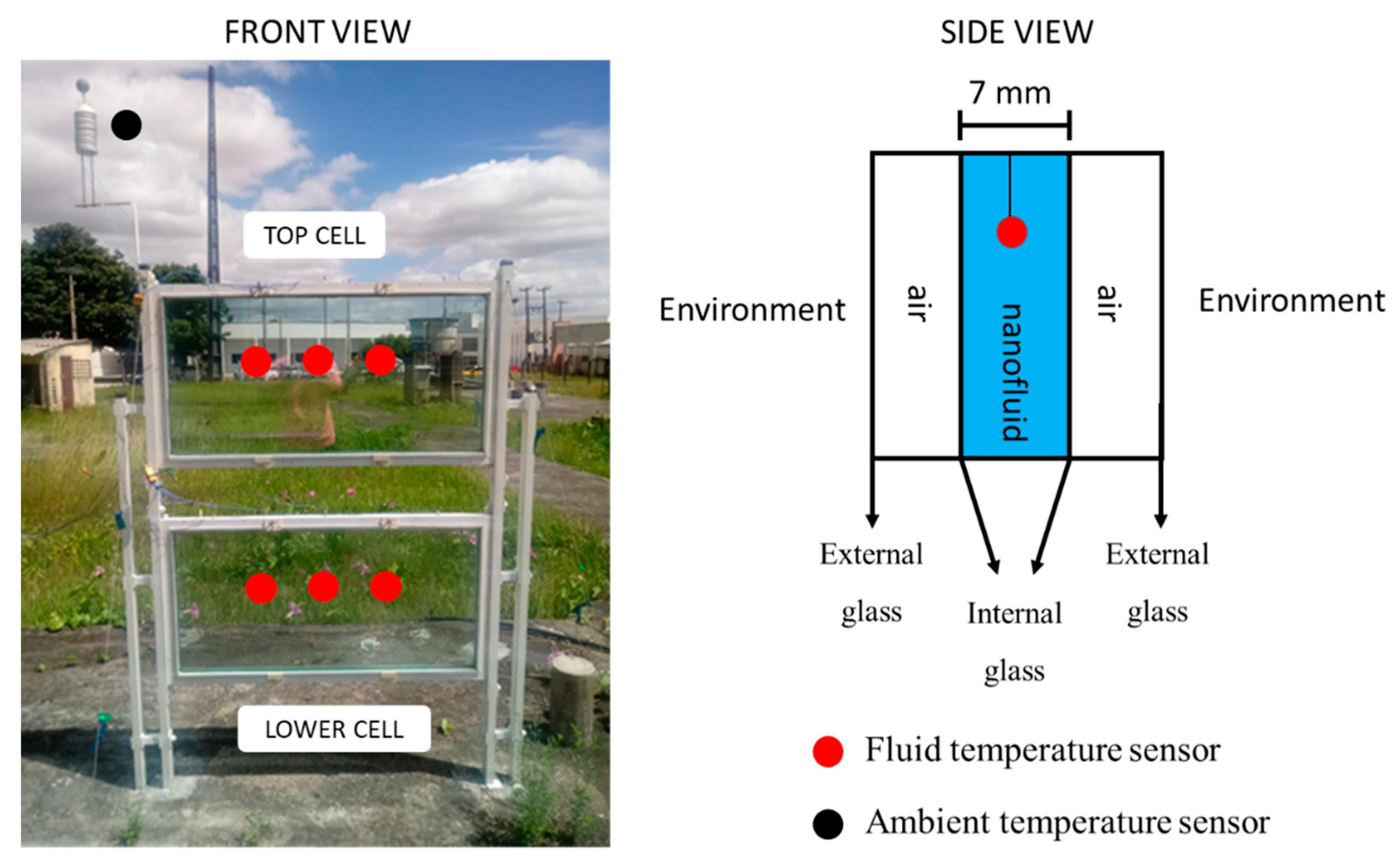 - Sainz-Manas, M.; Vossier, A.; Garcia, R.; Caliot, C.; Bataille, F.; Flamant, G. On-sun performance and stability of graphene nanofluids in concentrating direct absorption solar collectors. Sustain. Energy Technol. Assess. 2025, 83, 104605. [Google Scholar] [CrossRef]