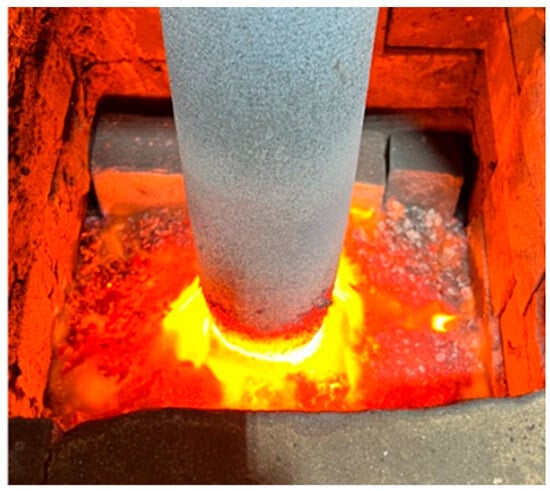 The charge was introduced stepwise, with approximately 2 kg added every hour. Each synthesis experiment had a total duration of 7 h. This period included a loading stage of 5 h followed by a holding time of 2 h under stable operating conditions. After completion of the synthesis, the furnace was switched off and allowed to cool naturally to room temperature. The furnace was then dismantled to recover the synthesized products for further analysis.