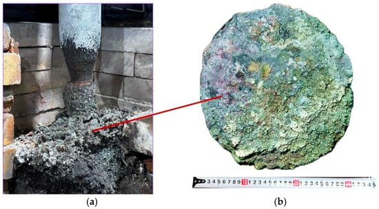 After completion of the experiment, the furnace was switched off and allowed to cool naturally to room temperature (~24 h). Upon completion of cooling, the left side of the furnace was dismantled to enable further investigations and visual assessment of the process behavior. Figure 8 shows the dismantled furnace.