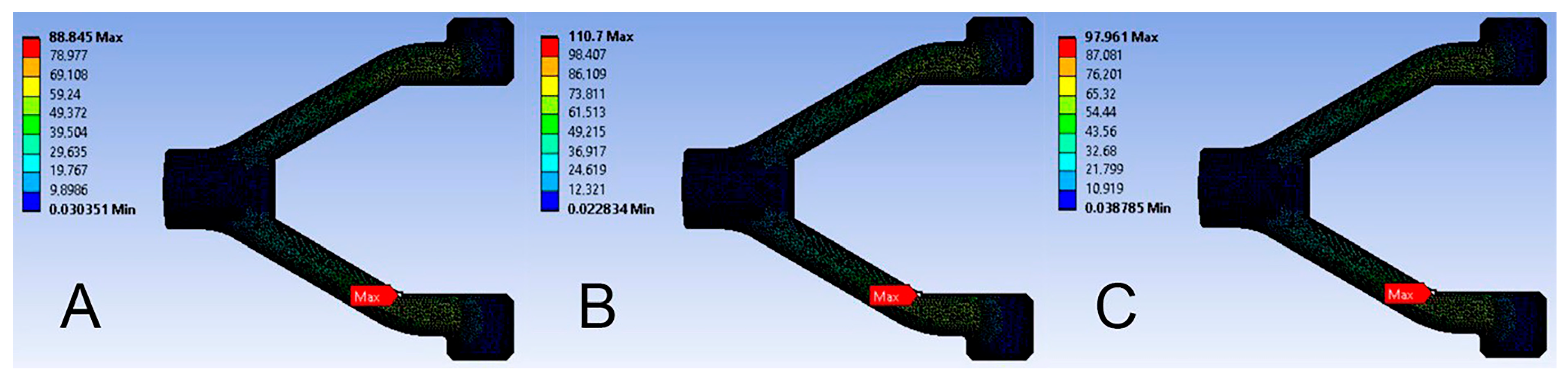 - Patil, R.V.; Lande, P.R.; Reddy, Y.P.; Sahasrabudhe, A.V. Optimization of Three Wheeler Chassis by Linear Static Analysis. Mater. Today Proc. 2017, 4, 8806–8815. [Google Scholar] [CrossRef]