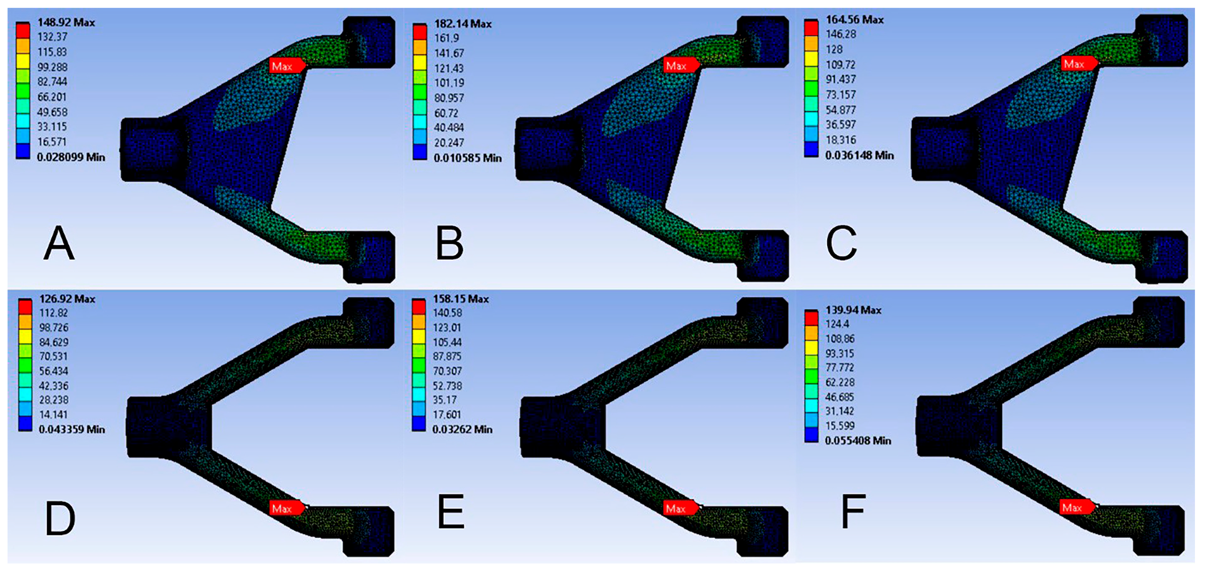 - Bhat, A.; Gupta, V.; Aulakh, S.S.; Elsen, R.S. Generative Design and Analysis of a Double-Wishbone Suspension Assembly: A Methodology for Developing Constraint Oriented Solutions for Optimum Material Distribution. J. Eng. Des. Technol. 2021, 21, 927–942. [Google Scholar] [CrossRef]