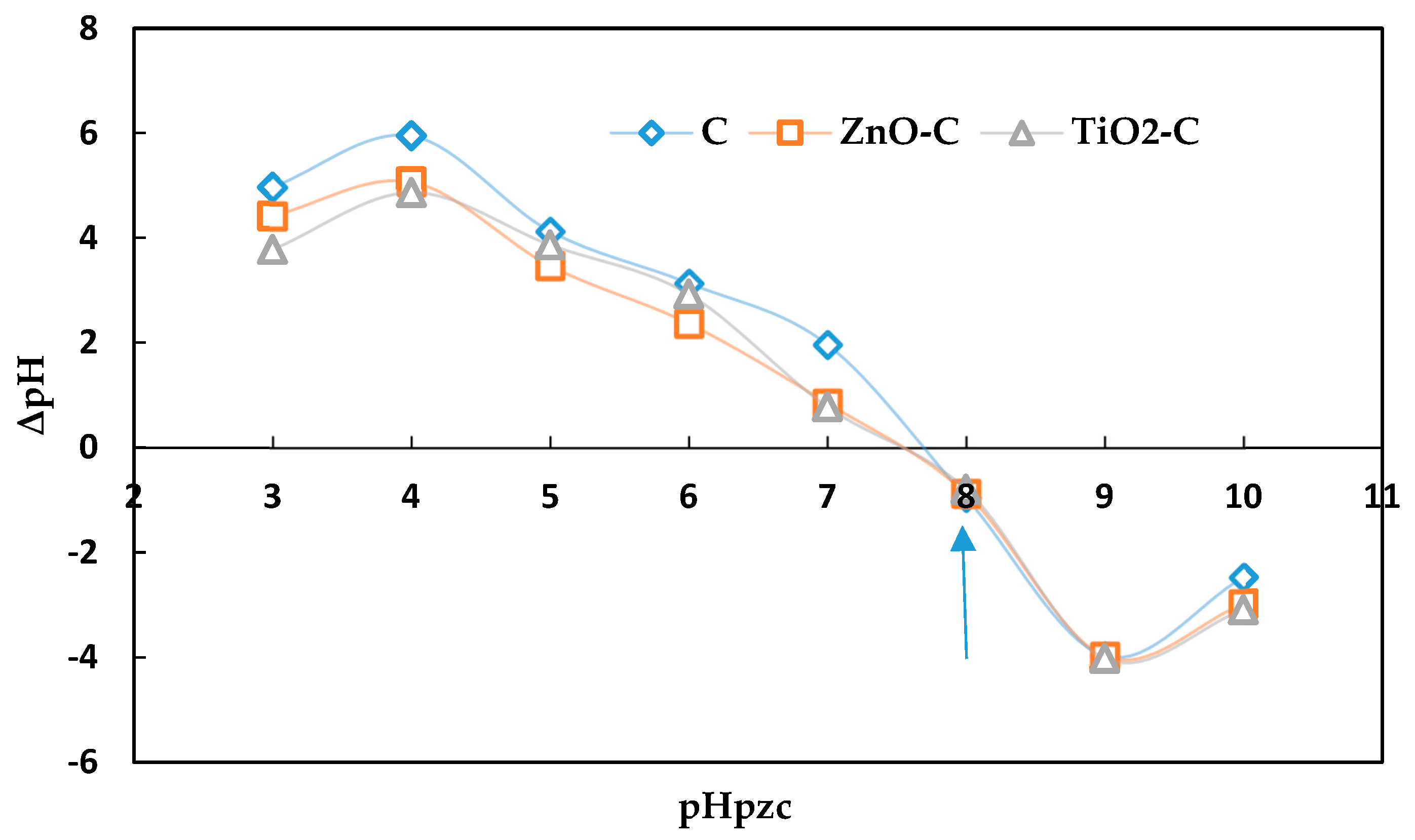 | ZnO-C | 303 | −8.36 ± 0.51 | ||