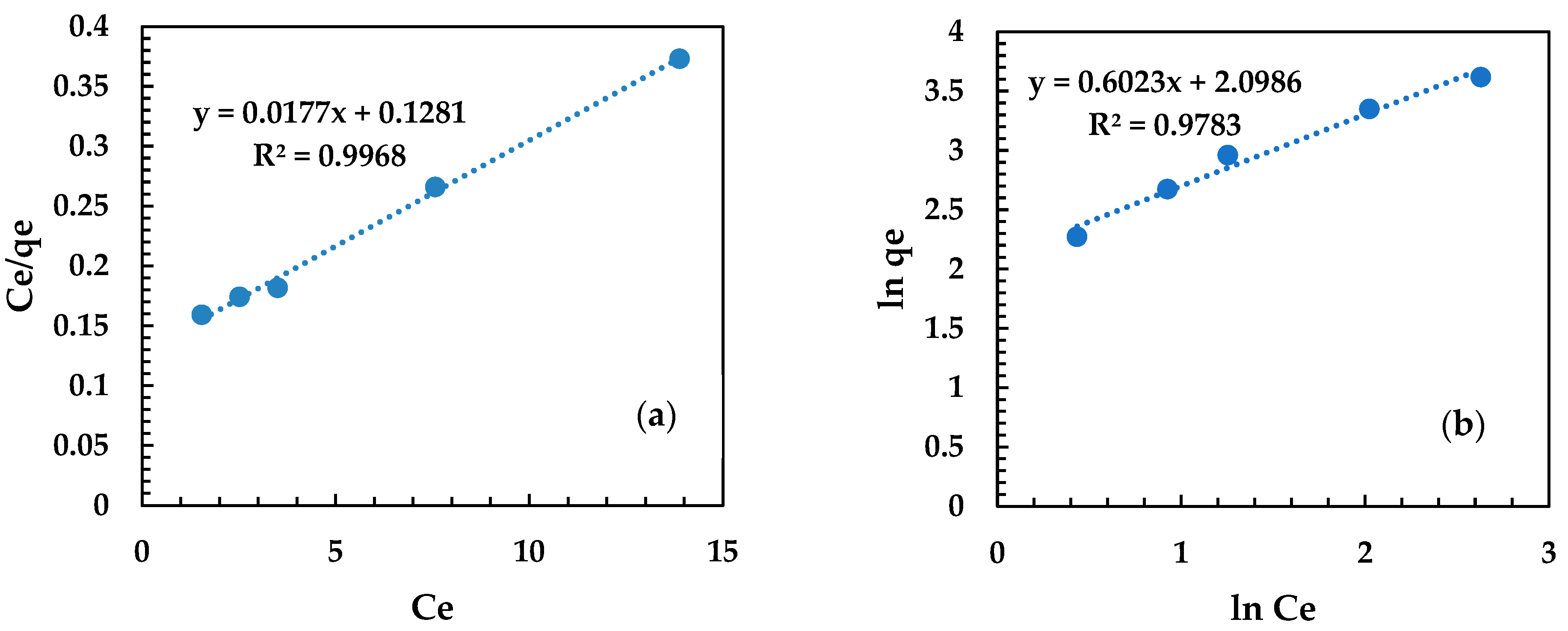 | 298 K | Langmuir Isotherms | Freundlich Isotherms | ||||