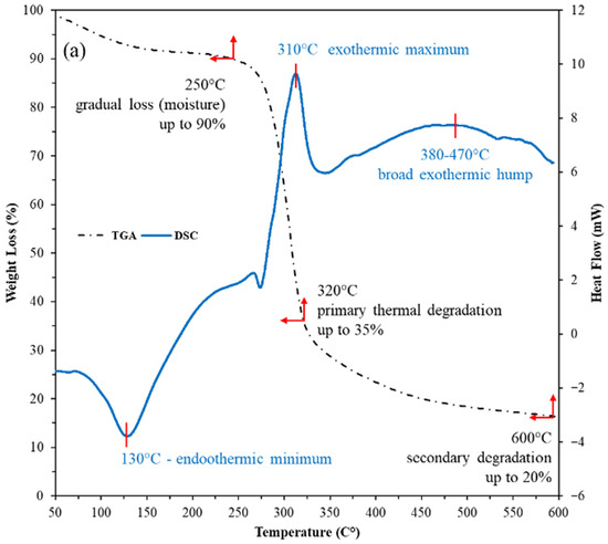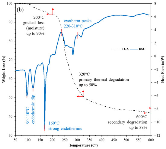 3.1.3. TGA and DSC Thermal Analyses