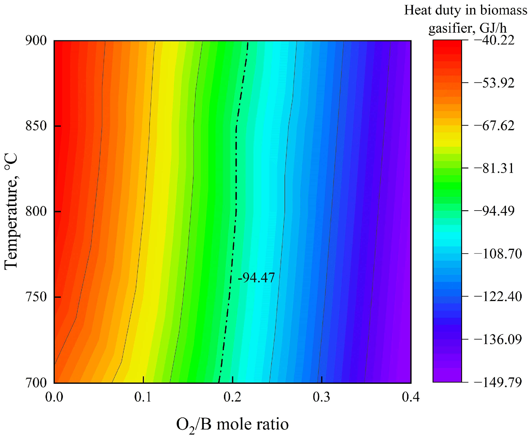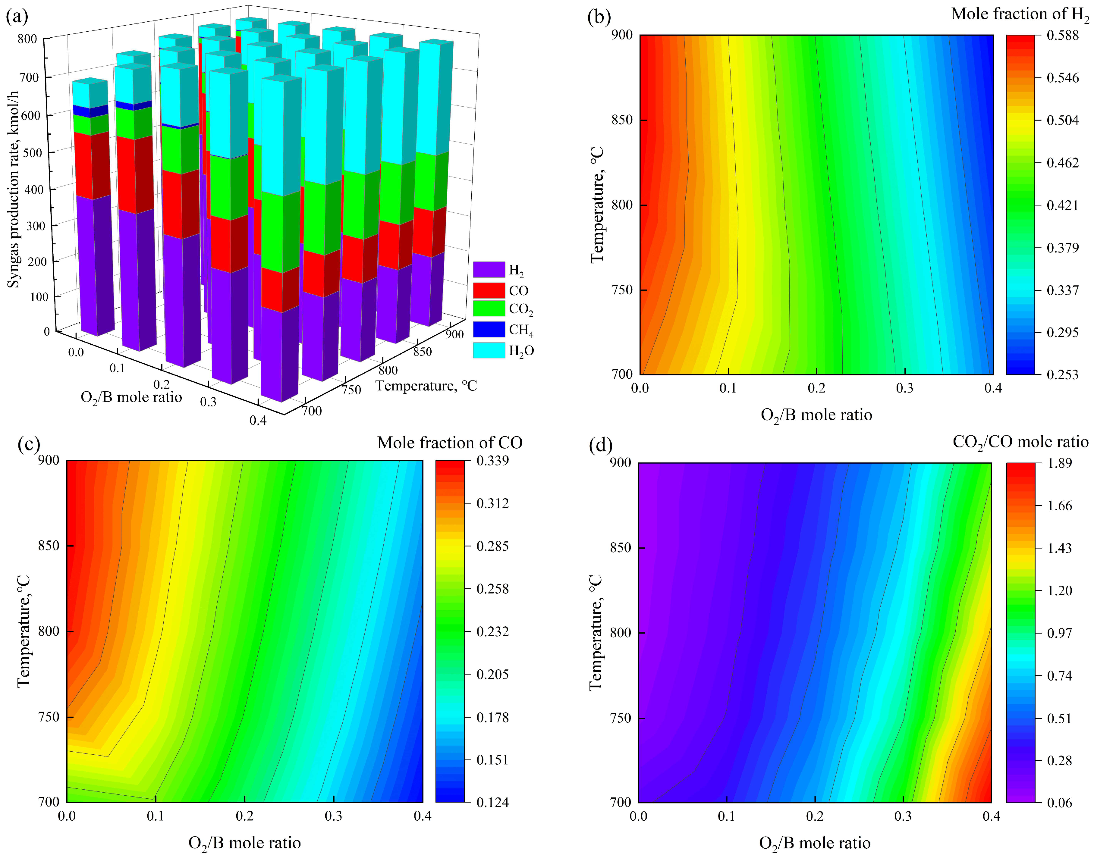 - Biomass is modeled as a non-conventional component based on its ultimate and proximate analyses. The O2/Biomass molar ratio (O2/B) in the gasification unit is normalized to the molar flow rate of carbon in the feedstock.