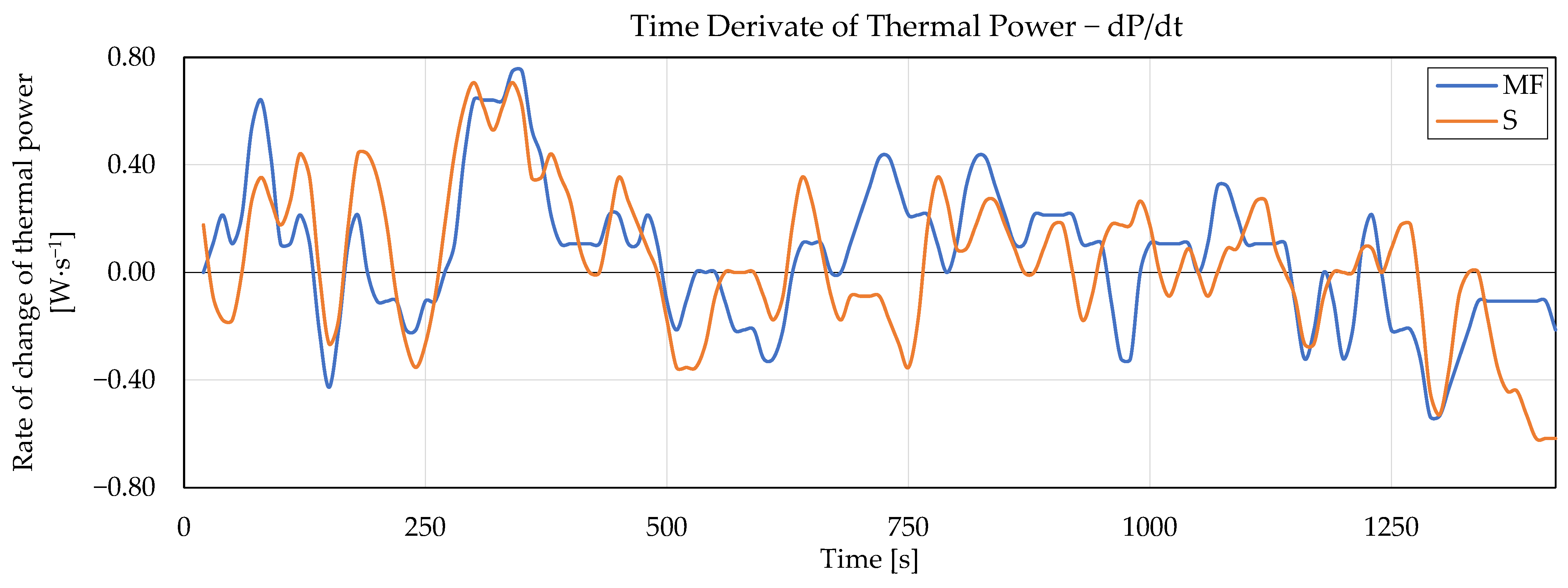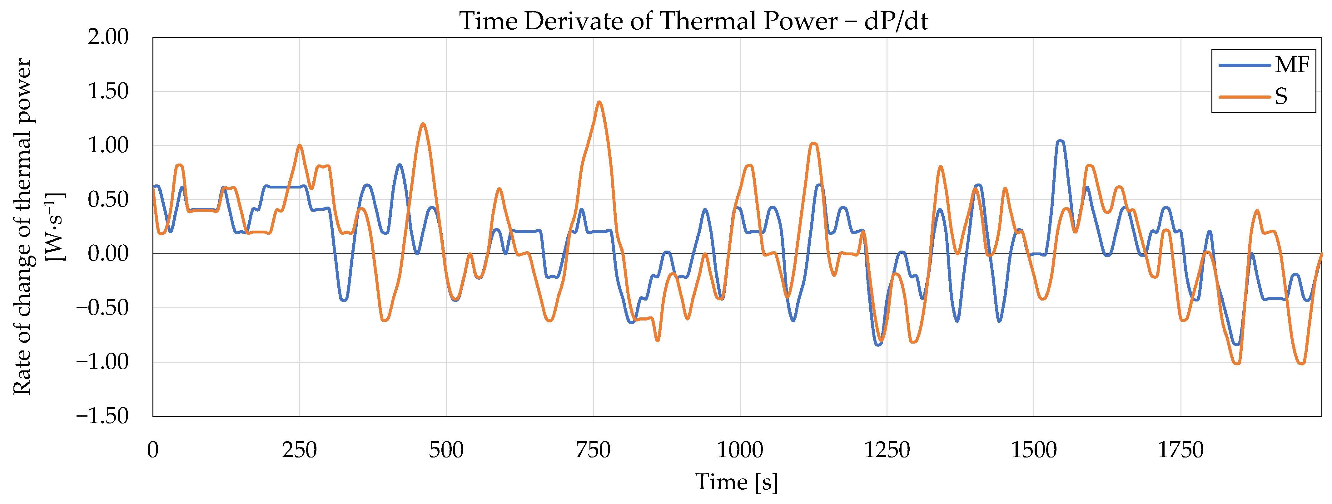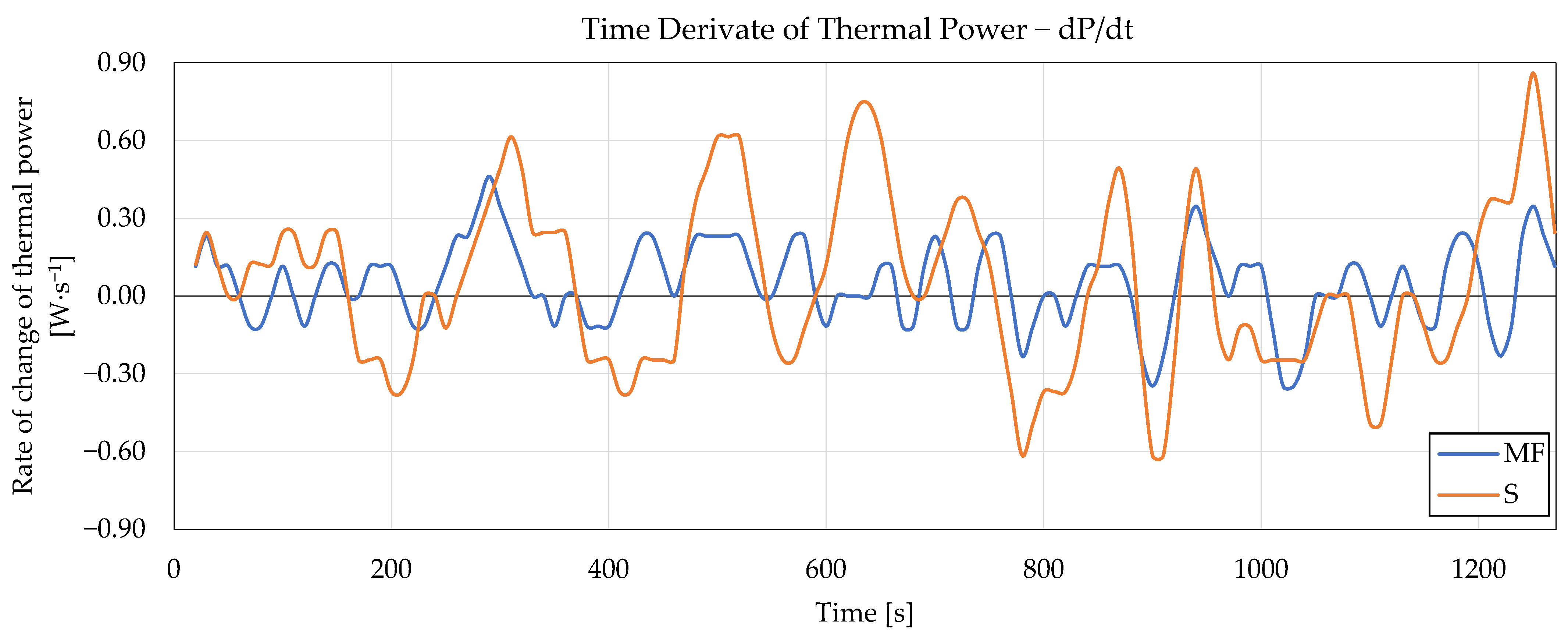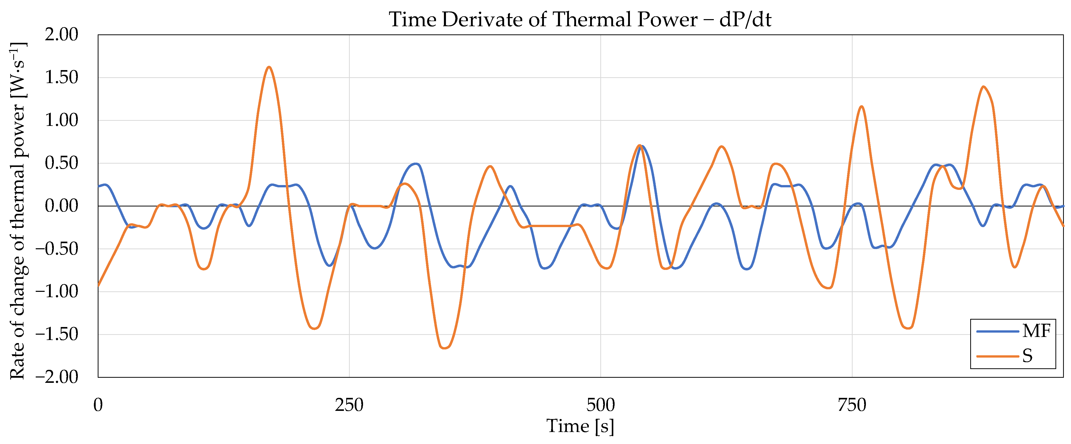 All performance indicators evaluated in this study are derived from the thermal power signal P(t), for which the measurement uncertainty was quantified. As a result, the uncertainty of the derived metrics is inherently linked to that of P(t) and does not represent an independent error source. Indicators based on integration or statistical aggregation of P(t), such as energetic inertia Θ or power stability indices, are less sensitive to instantaneous measurement uncertainty, as random errors tend to average out over time. In contrast, derivative-based indicators such as dP/dt are more sensitive to short-term fluctuations; therefore, these metrics were evaluated using time-smoothed power signals. Under these conditions, the magnitude of the observed differences between the compared collectors significantly exceeds the expected uncertainty-related variability.