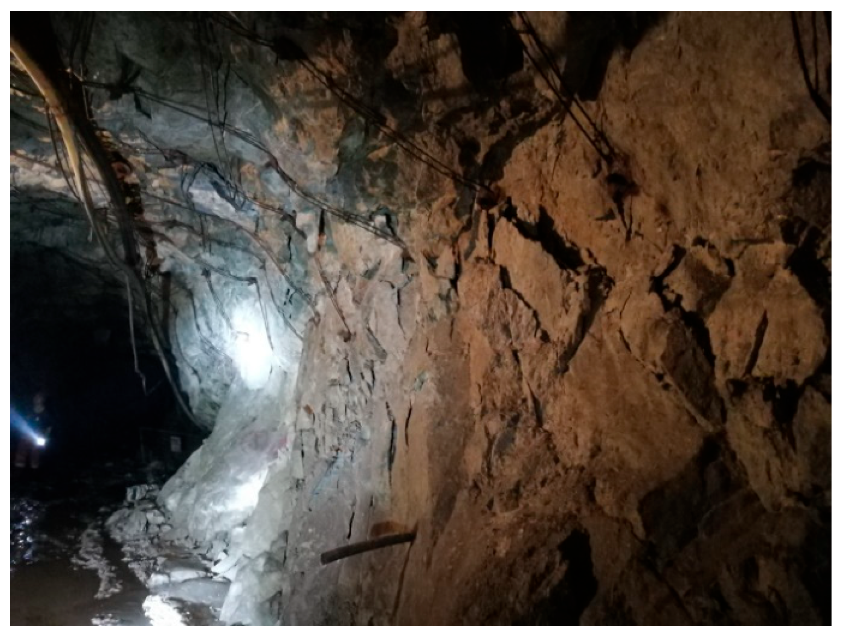 5.2. Rock Chamber Tests and Structural Surface Investigations of the Mine’s Surrounding Rock Bodies