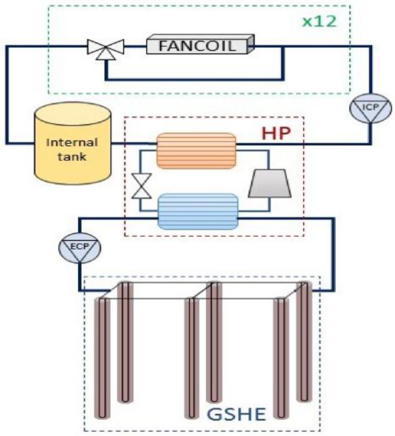 4]. The shallow ground-source heat-pump system consists of three main components. Among them, the geothermal energy exchange system (i.e., the GHE) has always been a key focus in the further development of ground-source heat-pump technology [