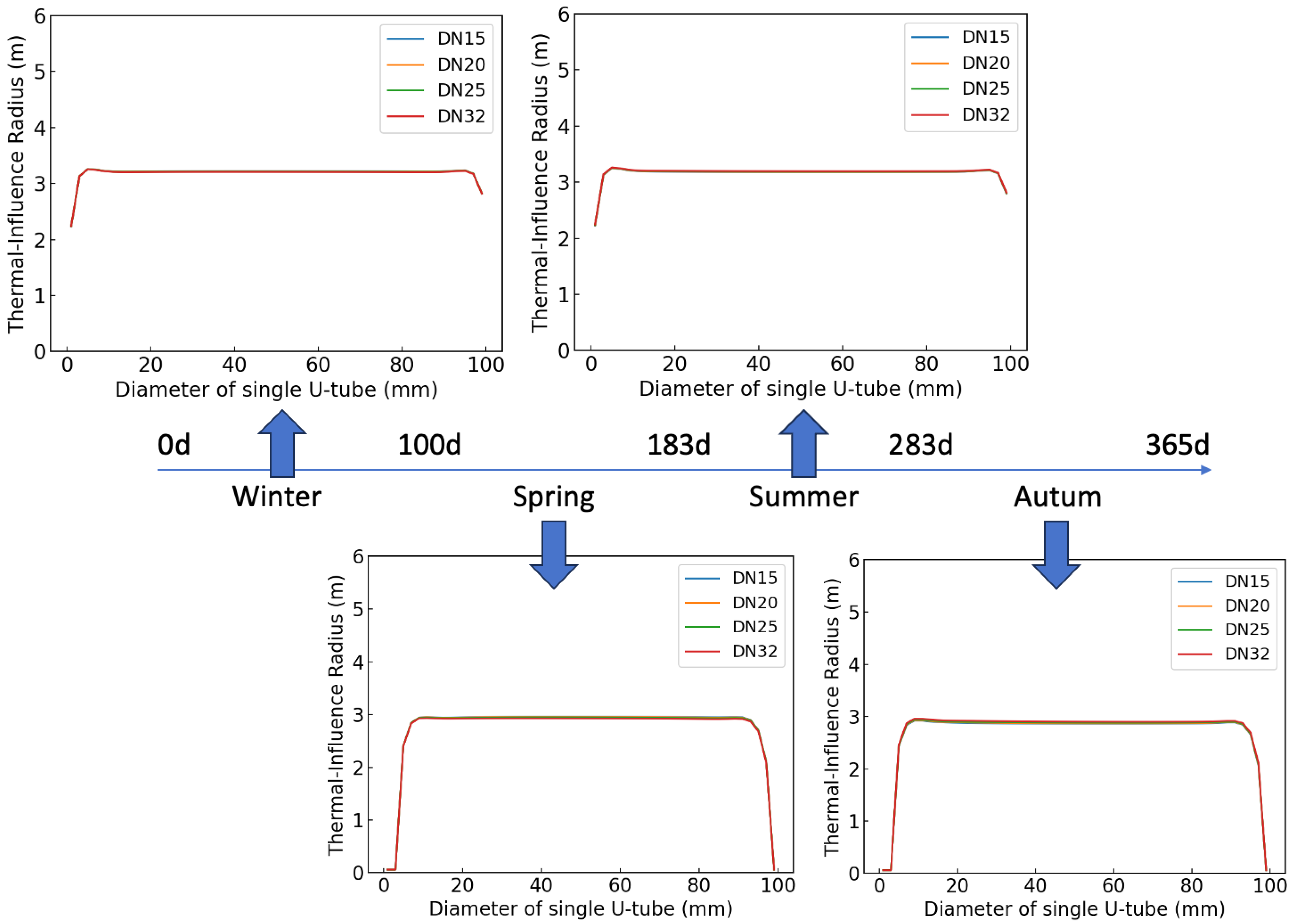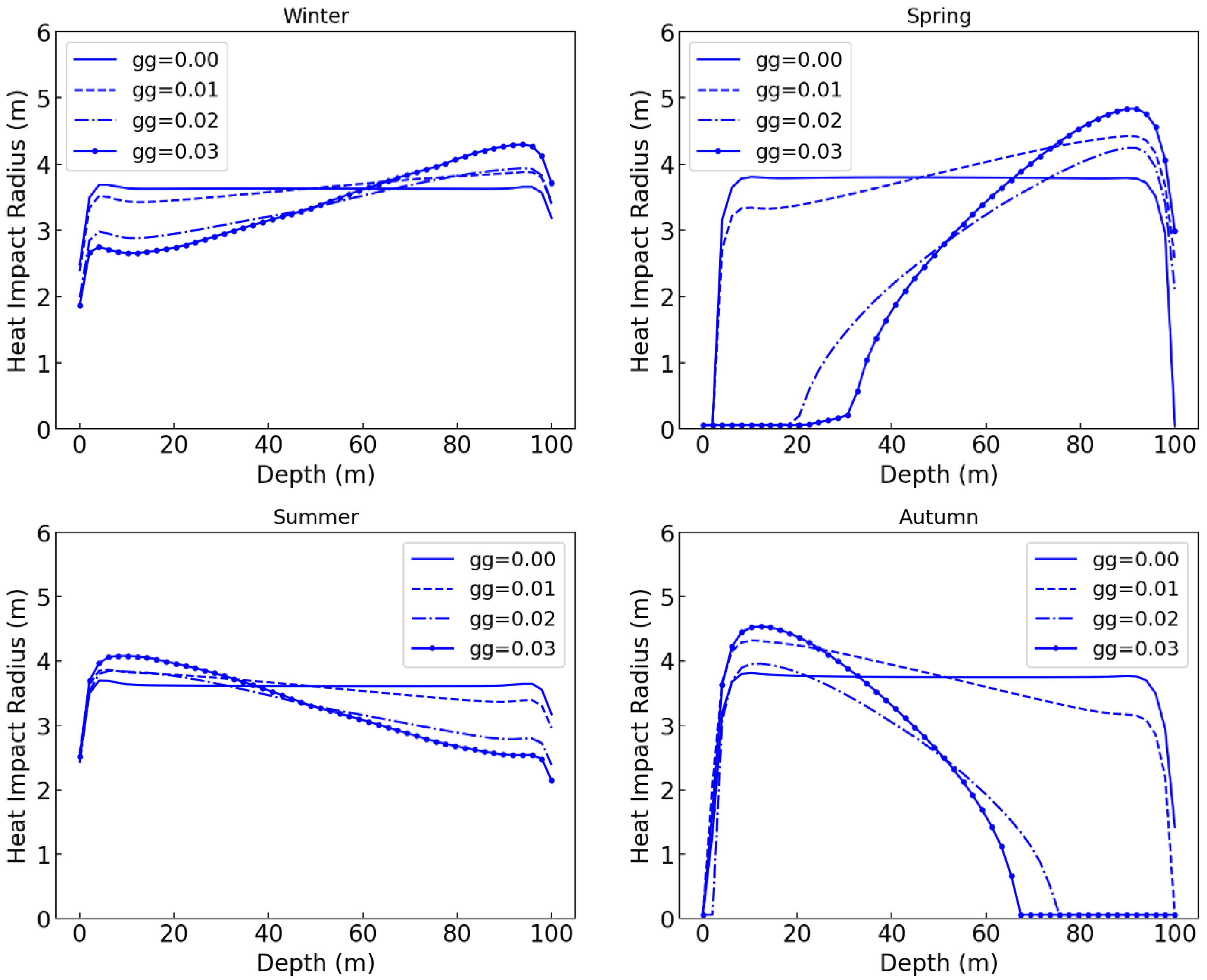 3.3.1. Unsteady Thermal-Effect Radius Across Seasons