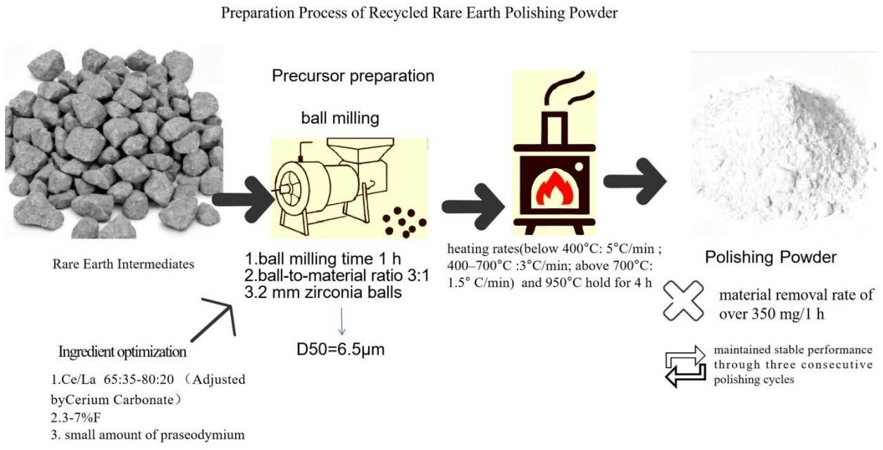 Xie, F.; Liu, S.; Liu, Y.; Zhong, S.; Cao, Y.; Chen, R.; Zhu, G. A Study on the Optimization of the Preparation of Recycled-Rare Earth Polishing Powder. Processes 2026, 14, 687. https://doi.org/10.3390/pr14040687