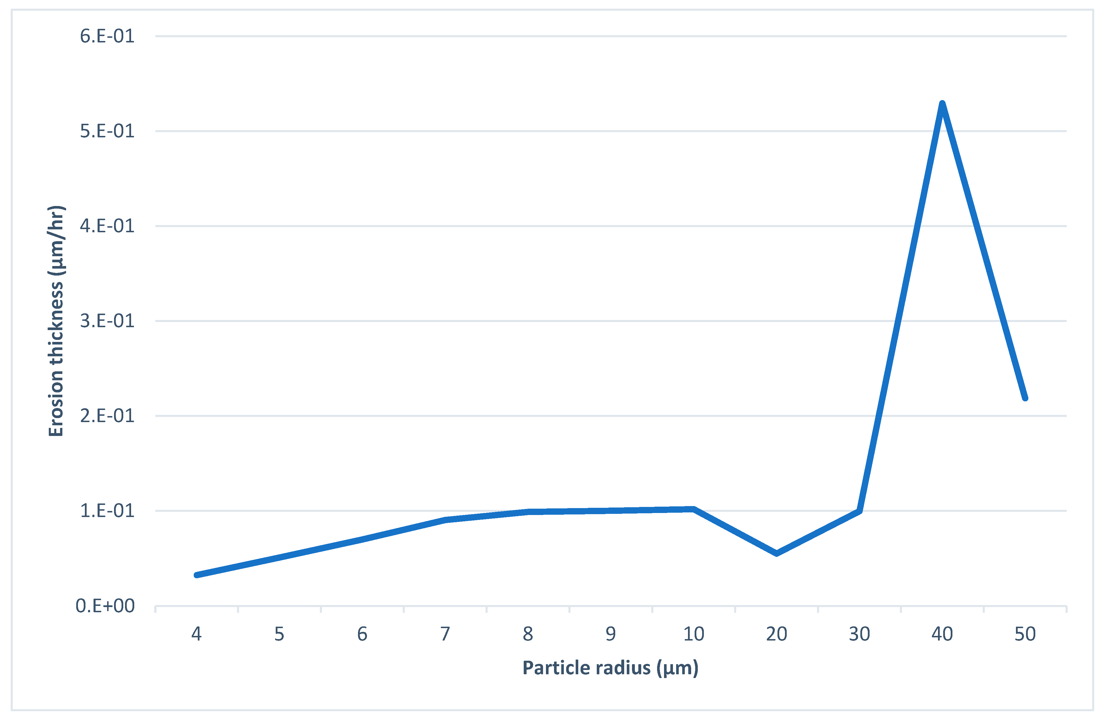 - Scenario 1: The variation in the erosion thickness with particle size.
