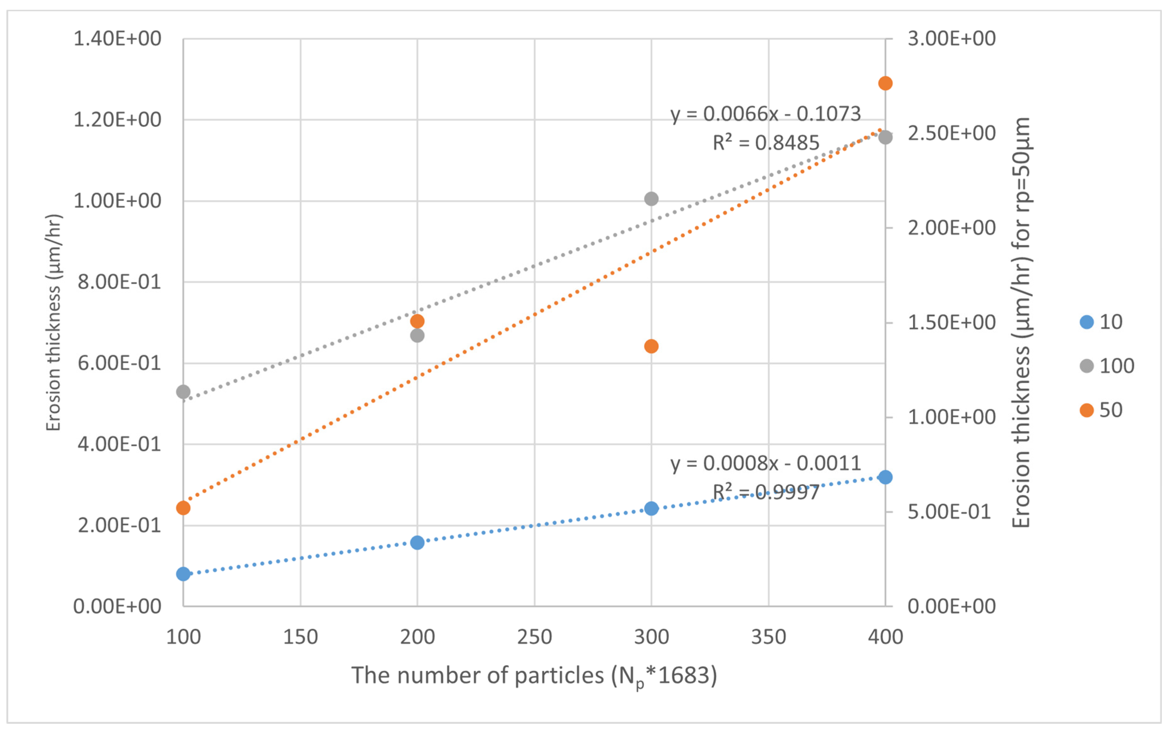 | Maximum erosion thickness (μm/h), Np = 400 |