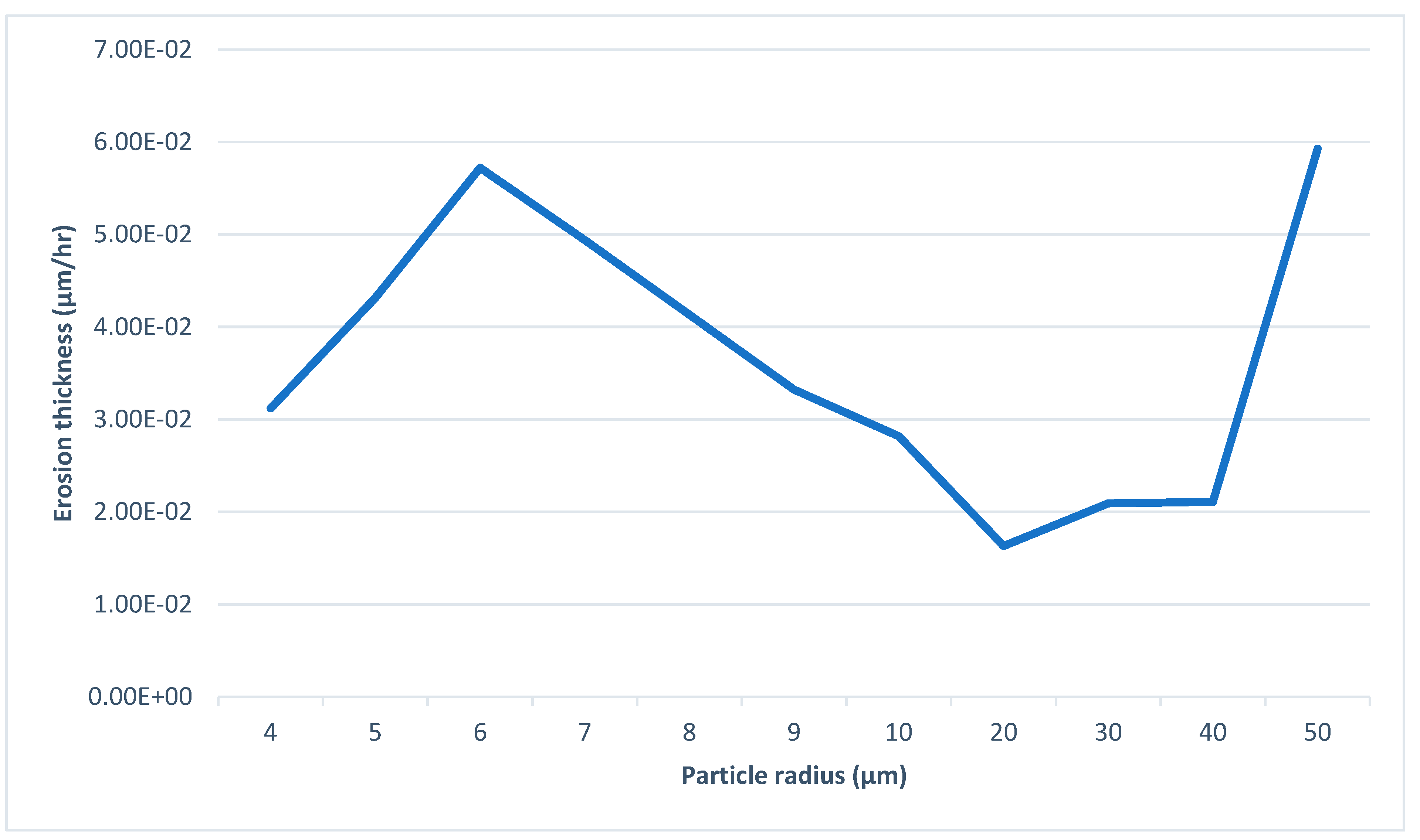 - The effects of the particle inflow rate and size on the erosion thickness