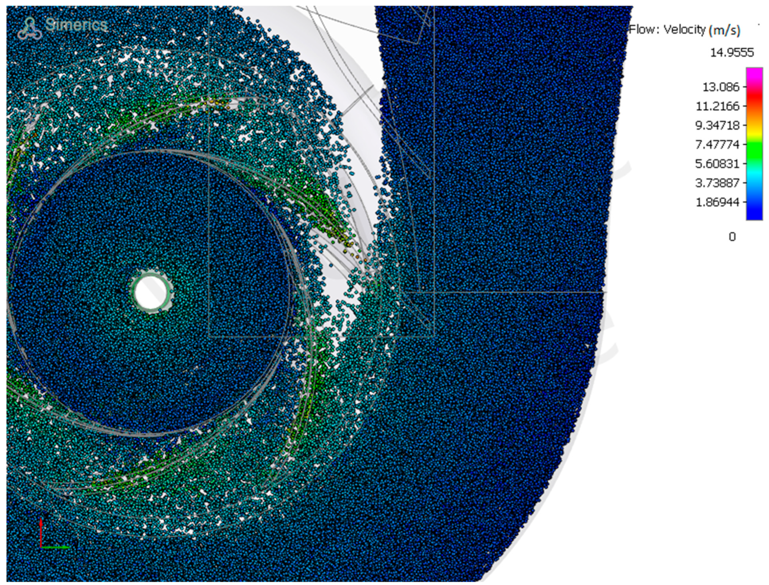 3.3. CFD Visualization of Particle Flow in Pump and Turbine Modes