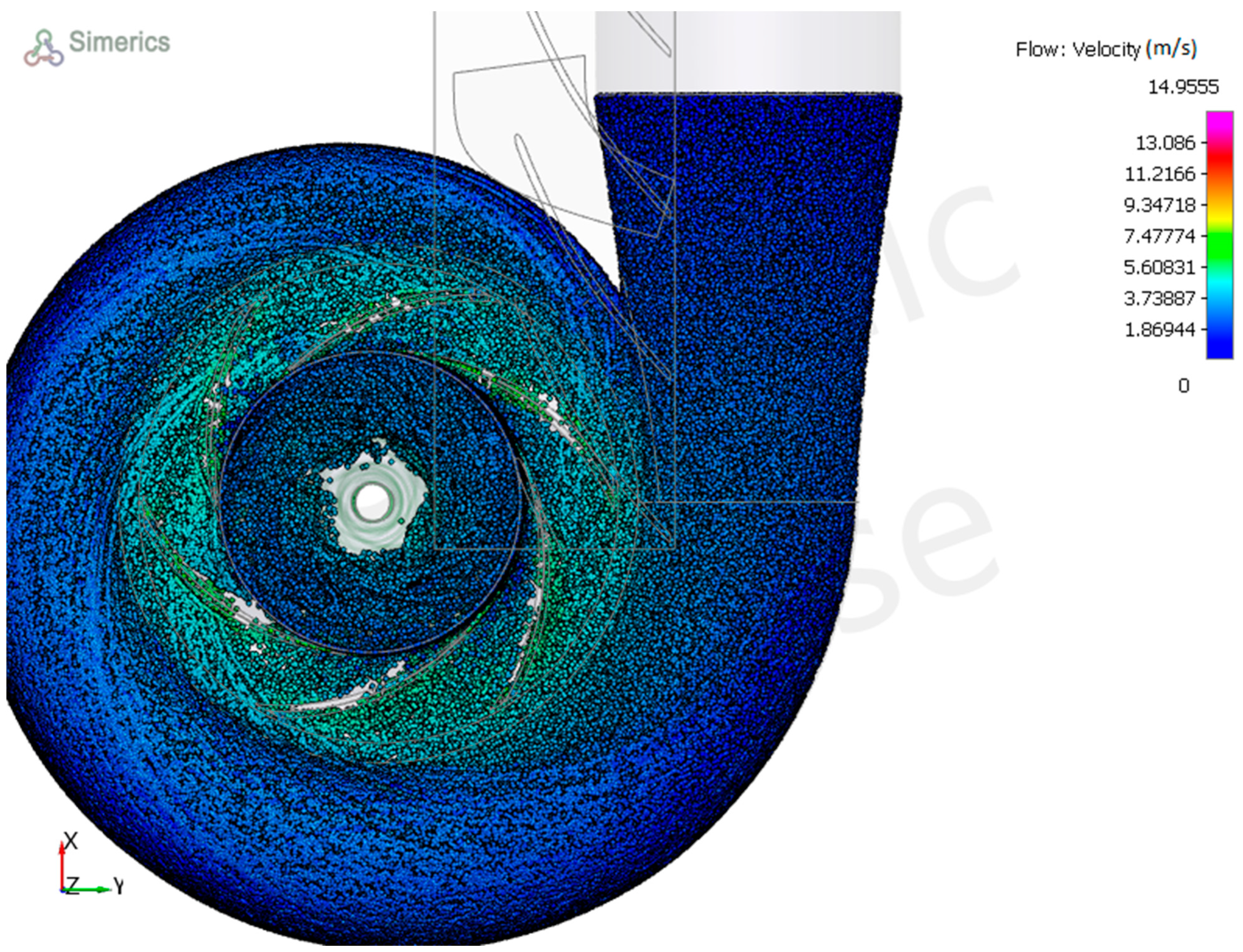 - Hou, Y.; Fancheng, W.; Zeng, T.; Liu, J. The effect of the blade damage on the dynamic characteristics of a centrifugal pump fluid. IET Conf. Proc. 2025, 2024, 674–678. [Google Scholar] [CrossRef]